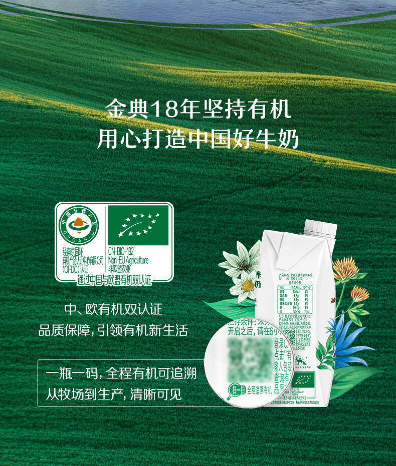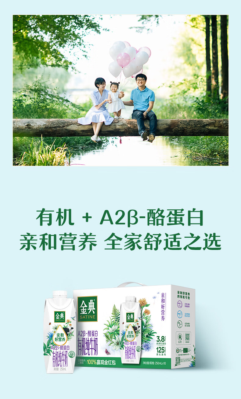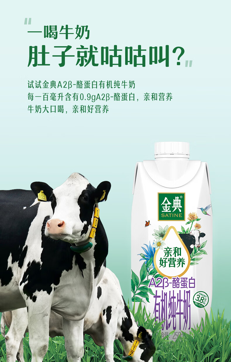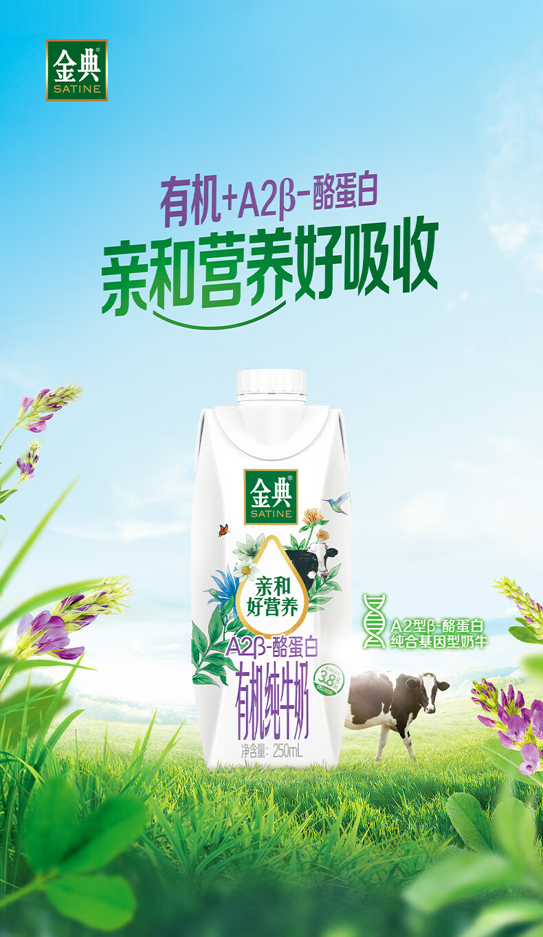 伊利 金典3.8g乳蛋白 A2β-酪蛋白有机纯牛奶 250ml*10盒 礼盒装整箱