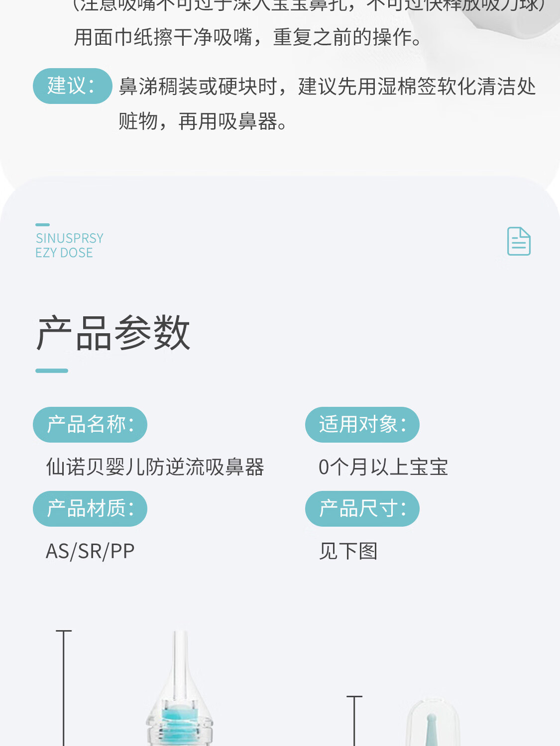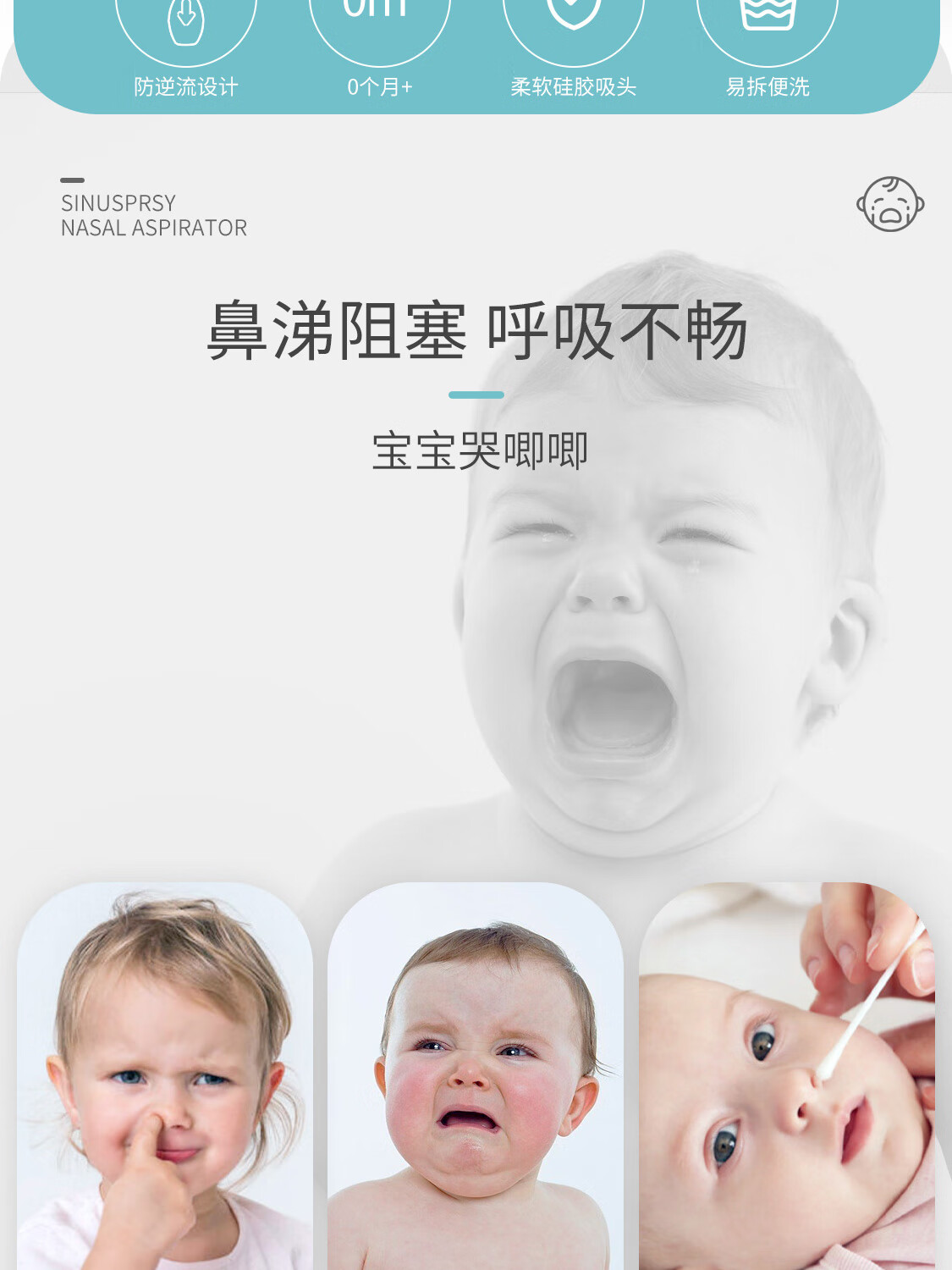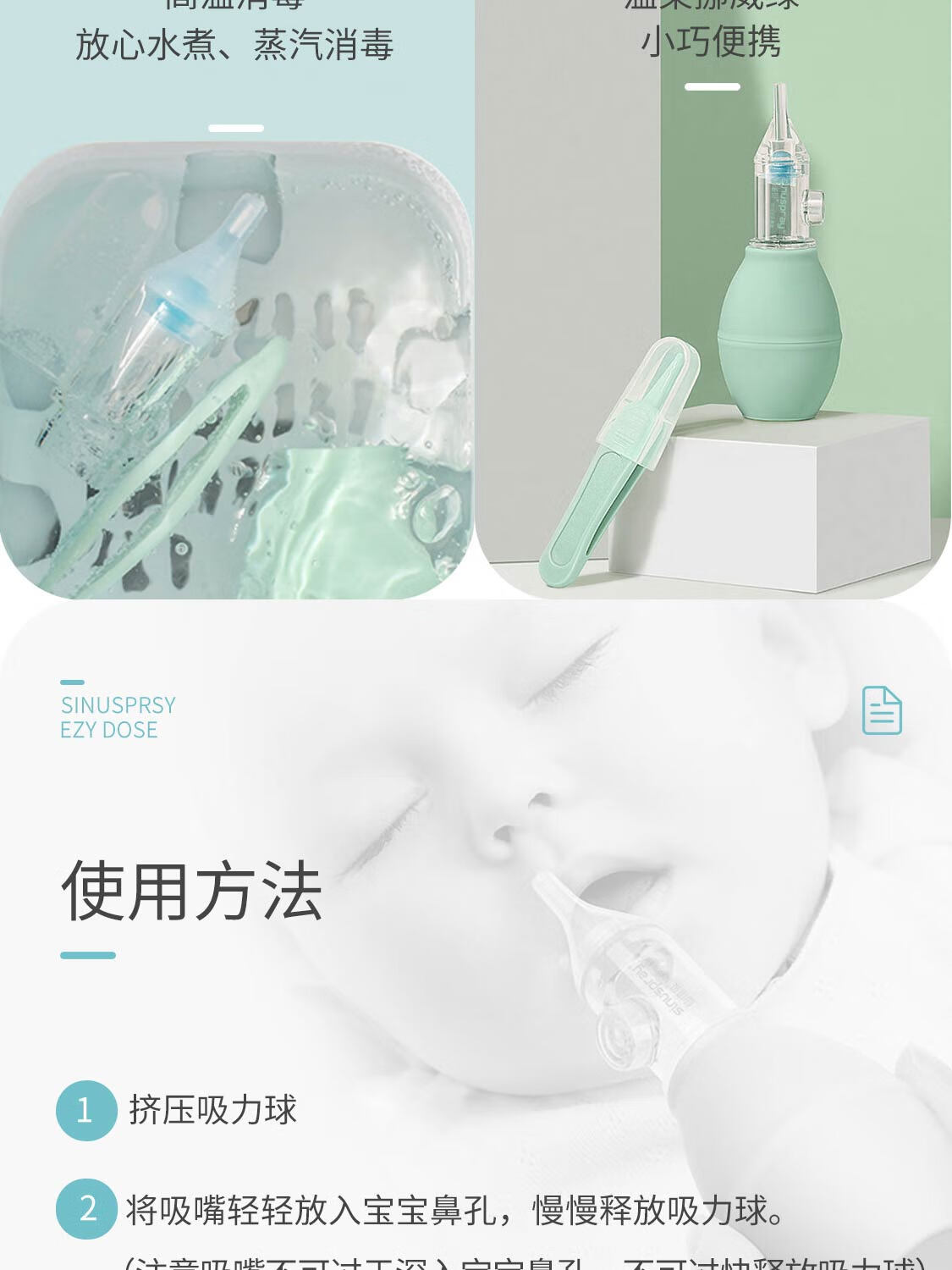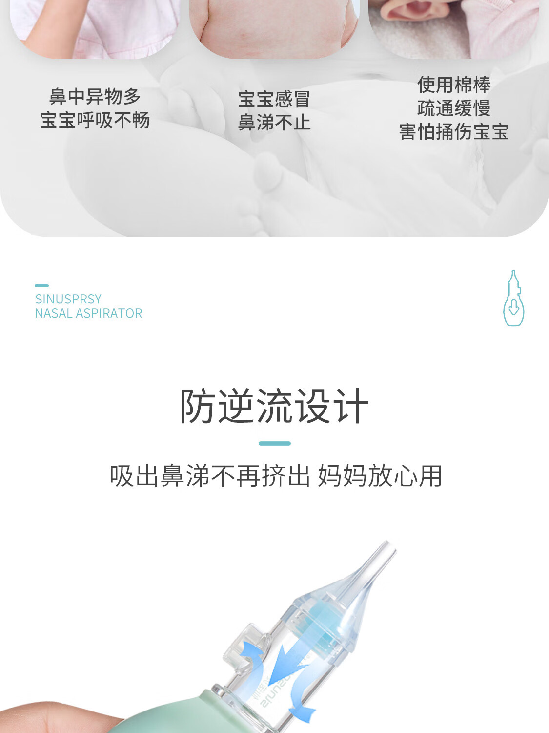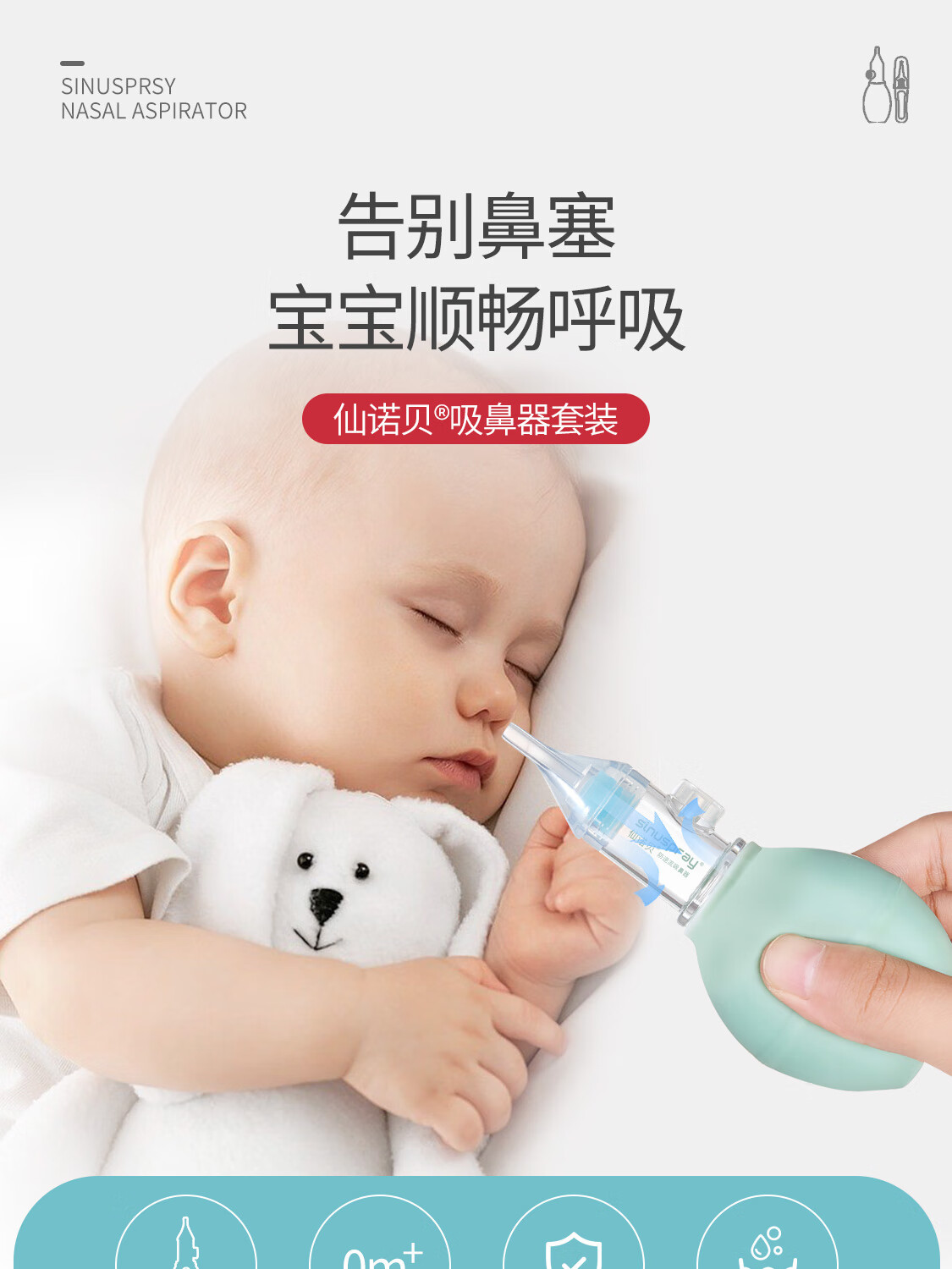 仙诺贝 宝宝防逆流吸鼻器儿童婴儿新生儿 掏鼻屎 鼻涕鼻塞婴幼儿清洁器 绿色