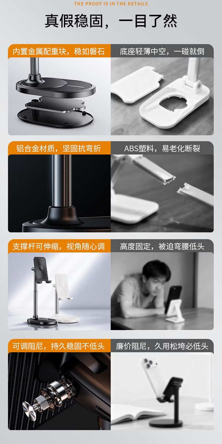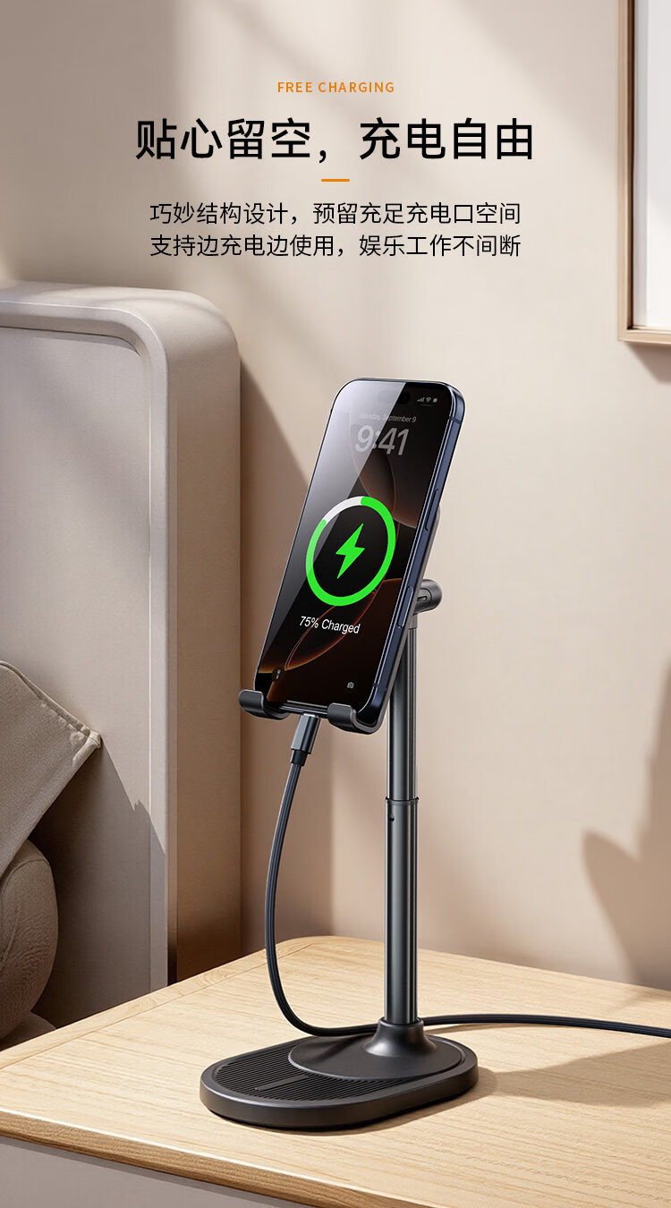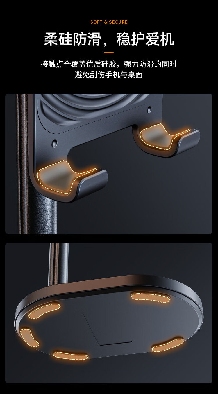 菲尔克【甄选直发】适用 手机支架桌面网红上网课多功能可折叠便携伸缩升降办公室懒人床头学生宿舍追剧 T9【火暴款支架-可伸缩】丨灵活挂钩-雪夜黑