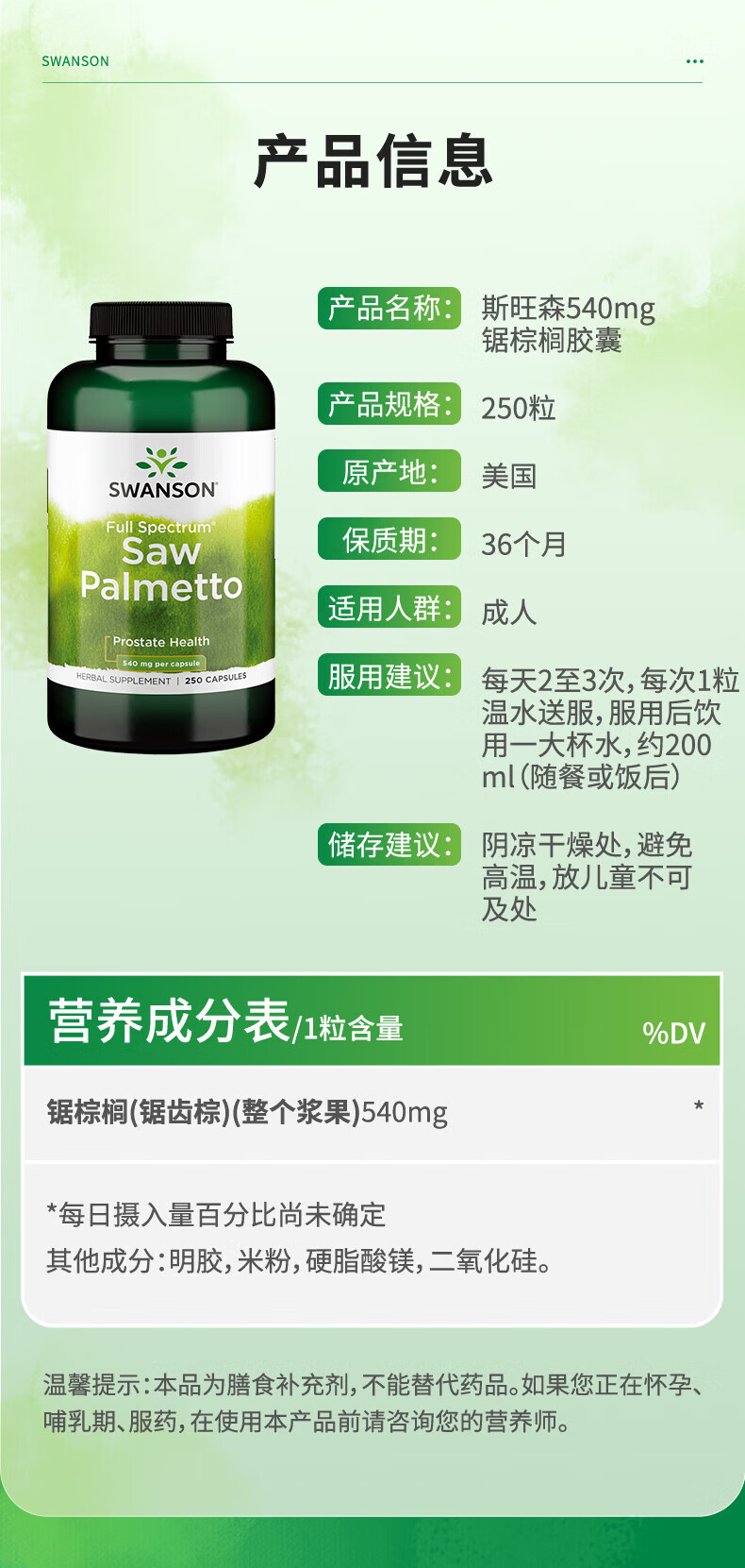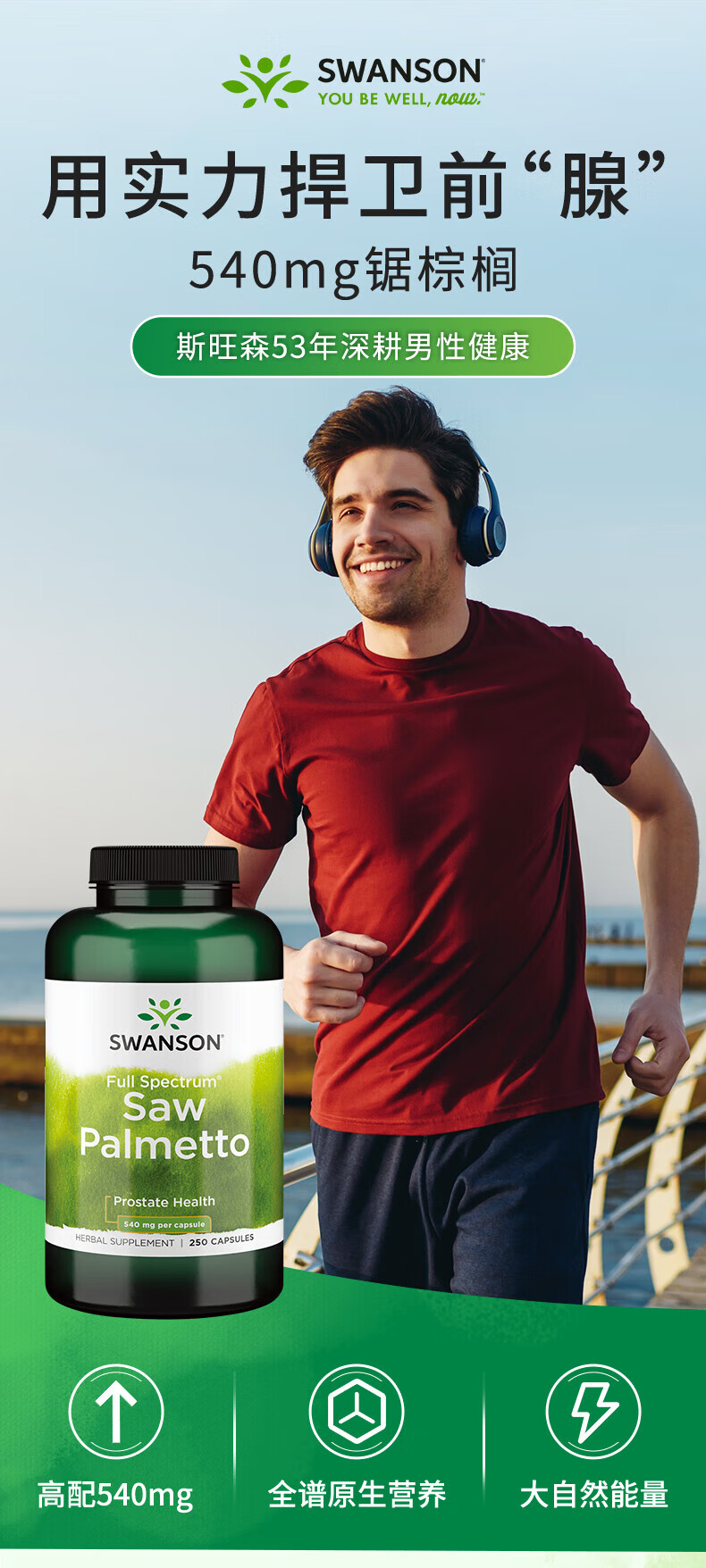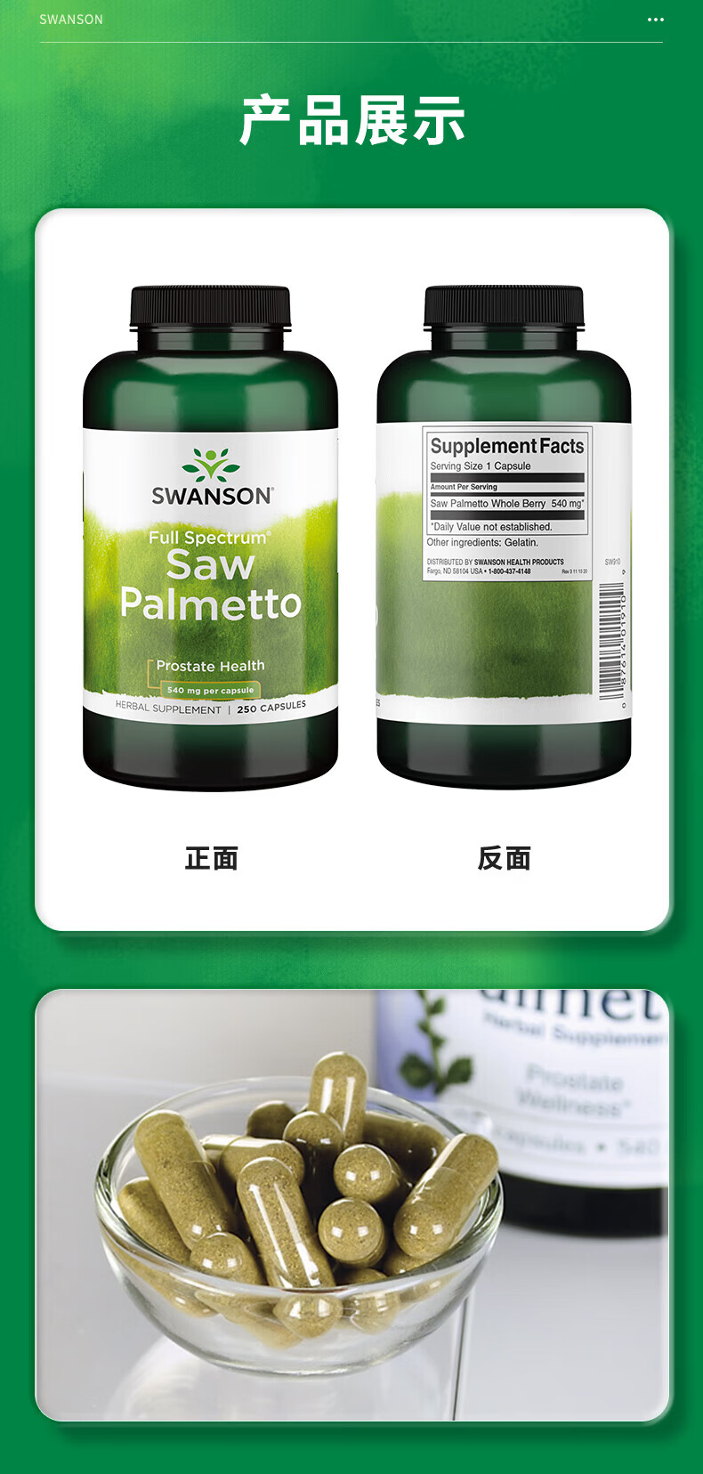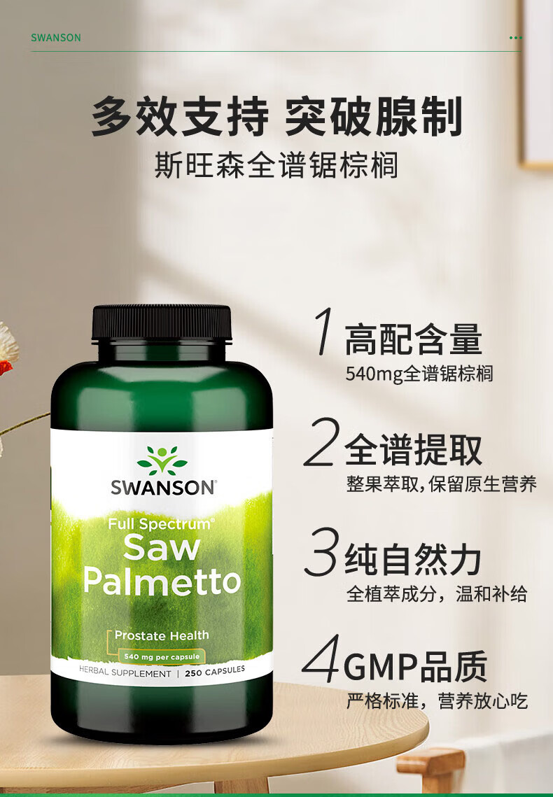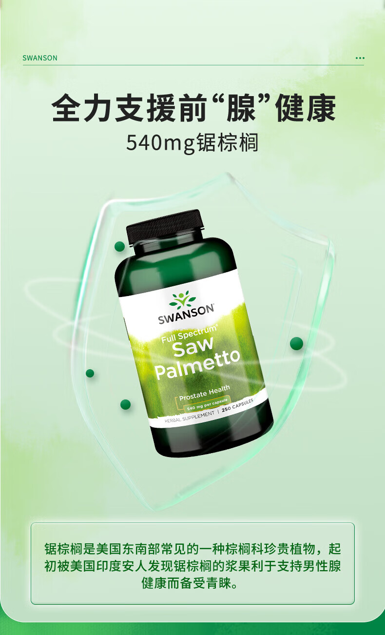 斯旺森(SWANSON)锯棕榈前列腺健康胶囊 调节DHT 呵护男性健康草本萃取 250粒