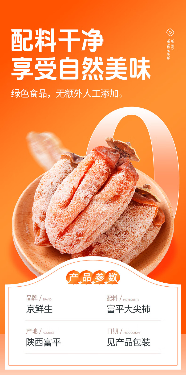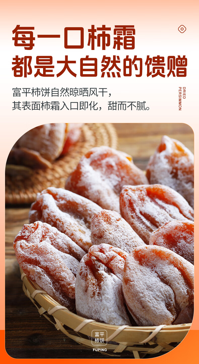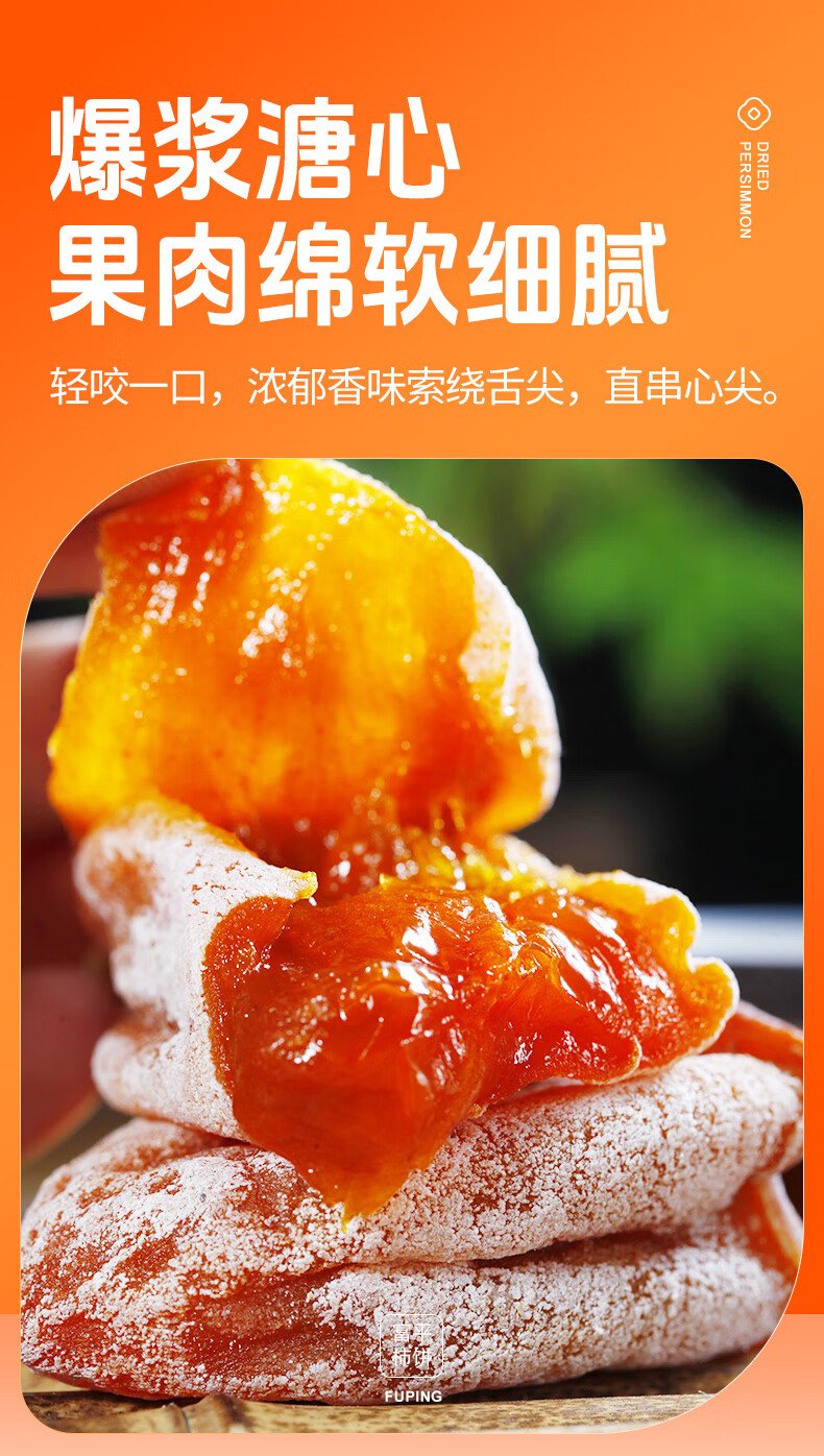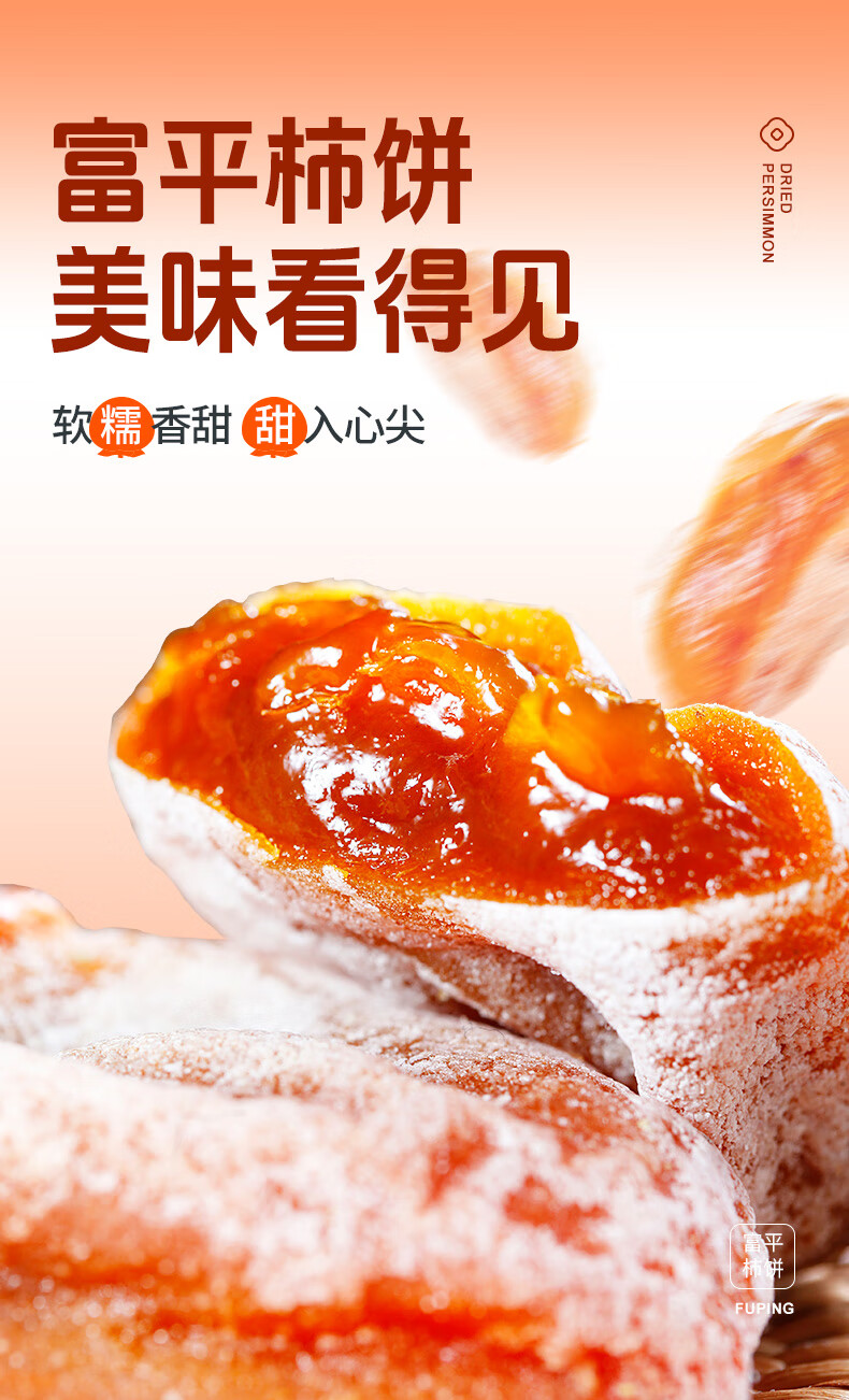 京鲜生陕西富平流心柿饼2斤 约24-28粒 霜降吊柿饼 生鲜水果礼盒