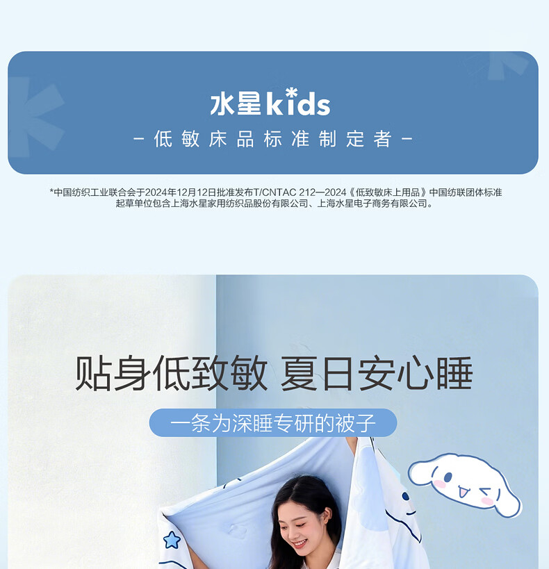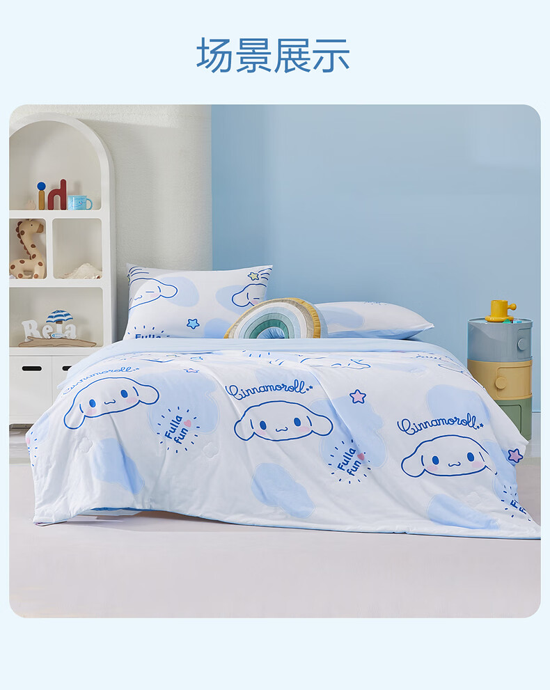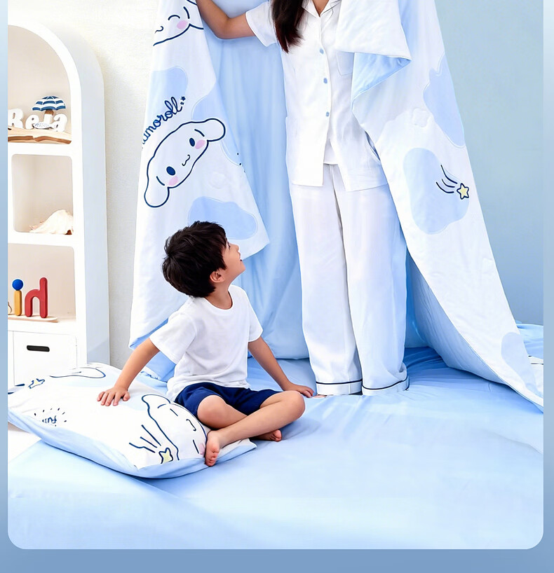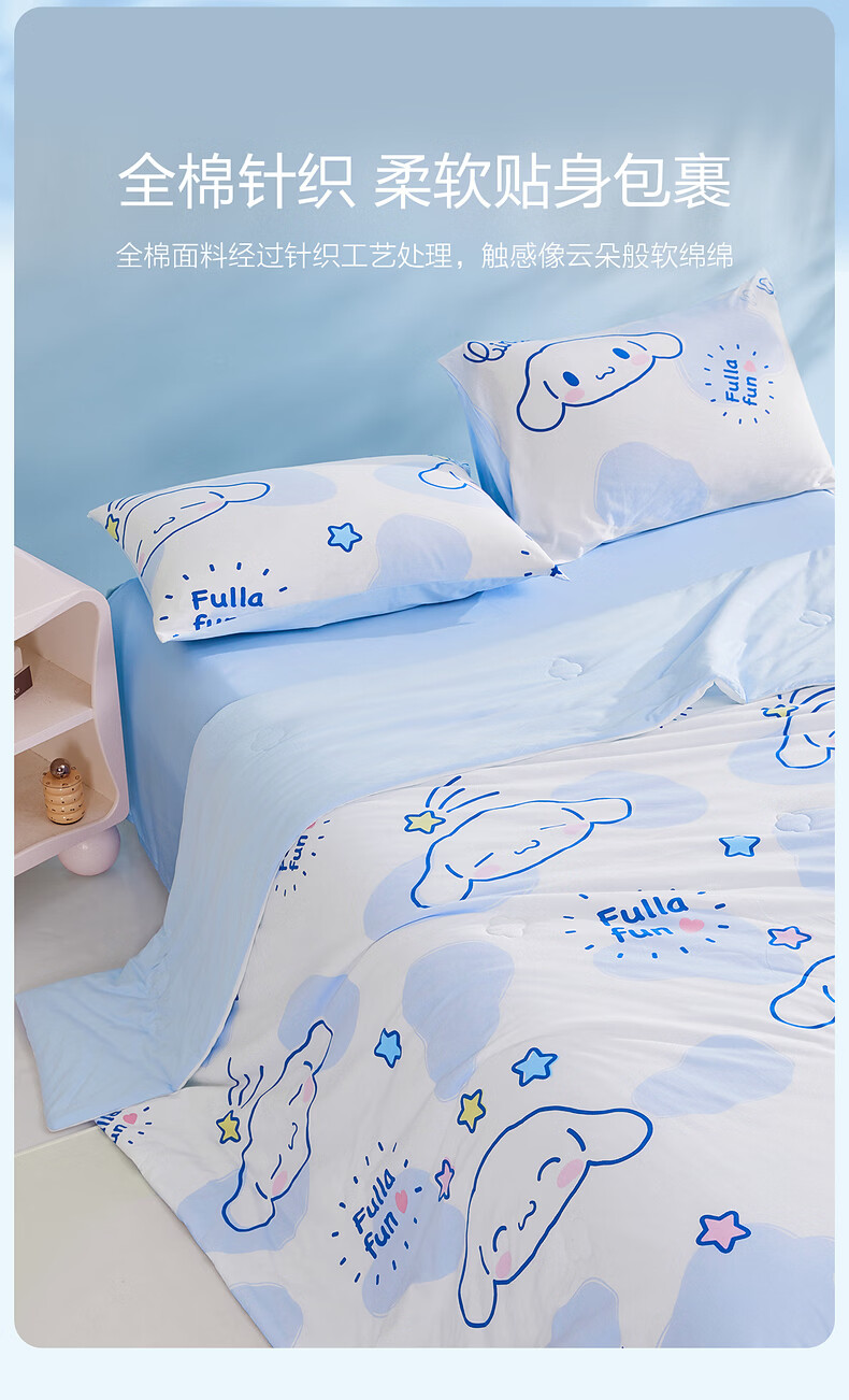 水星家纺儿童夏凉被空调被A类纯棉抗菌可机洗夏被芯薄被子宿舍夏凉被 海盐大耳狗Pro全棉针织夏被 120cm*150cm