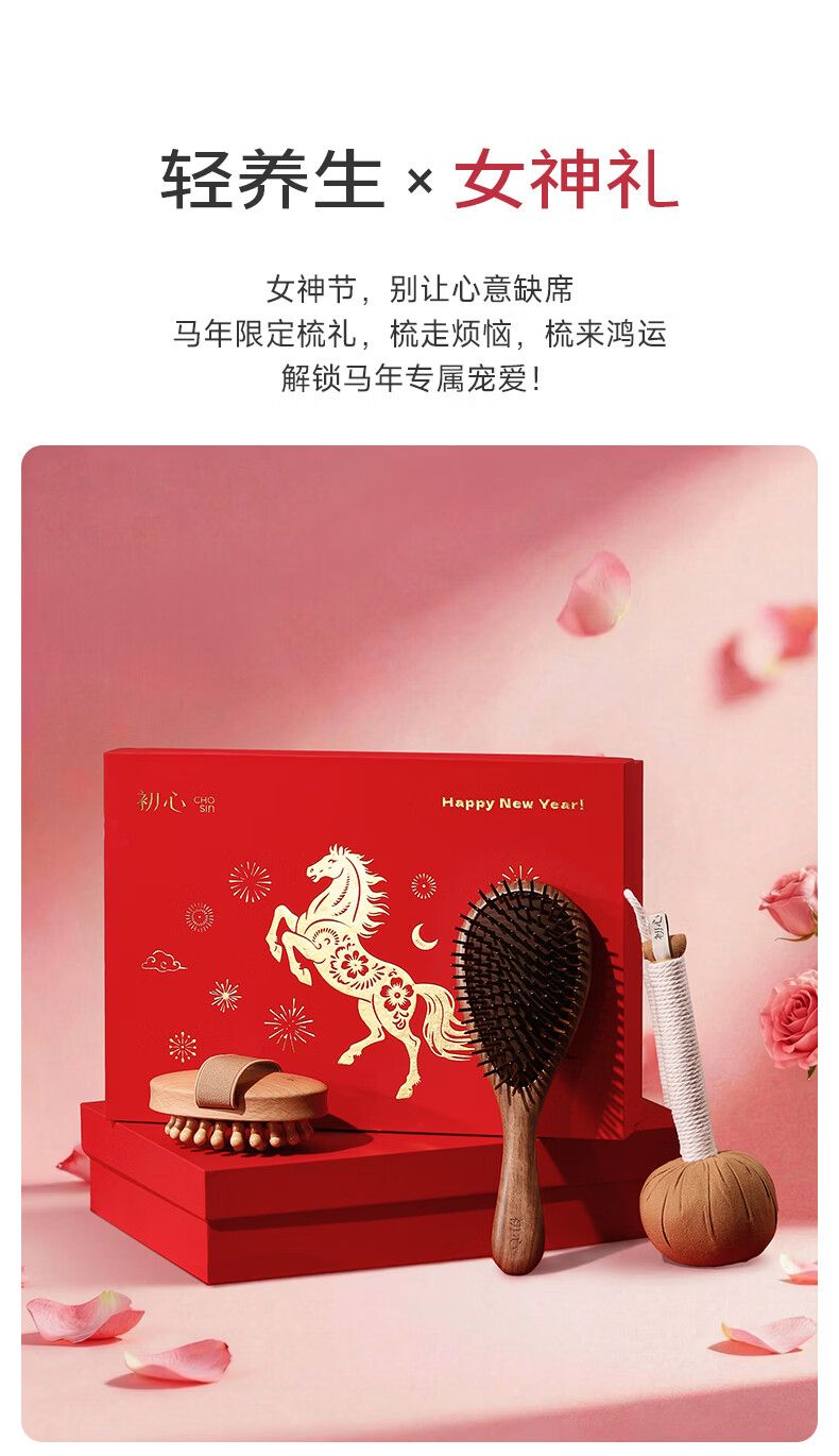 初心520礼物开运梳子礼盒女士护发按摩生日礼物新婚送闺蜜伴手礼 金鞍梳礼盒