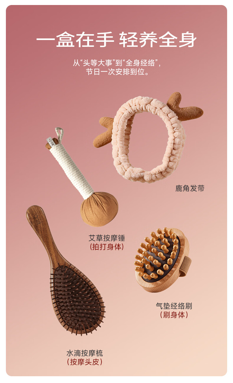 KRRAMEL生日礼物女士送女友女生小众高级实用梳子礼盒新婚礼物 粉黛礼盒【中号樱花粉松塔梳+刮痧板+香薰】