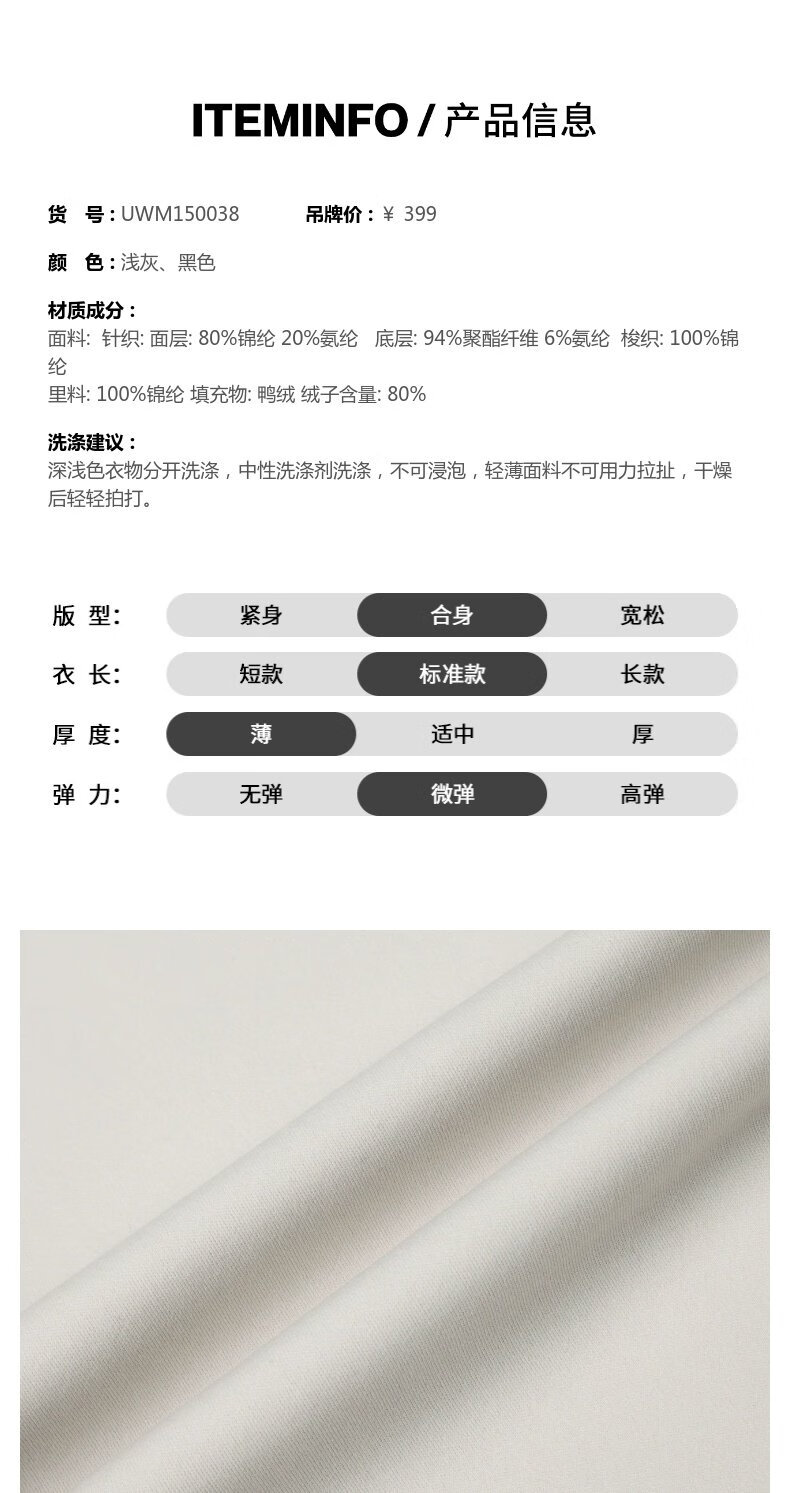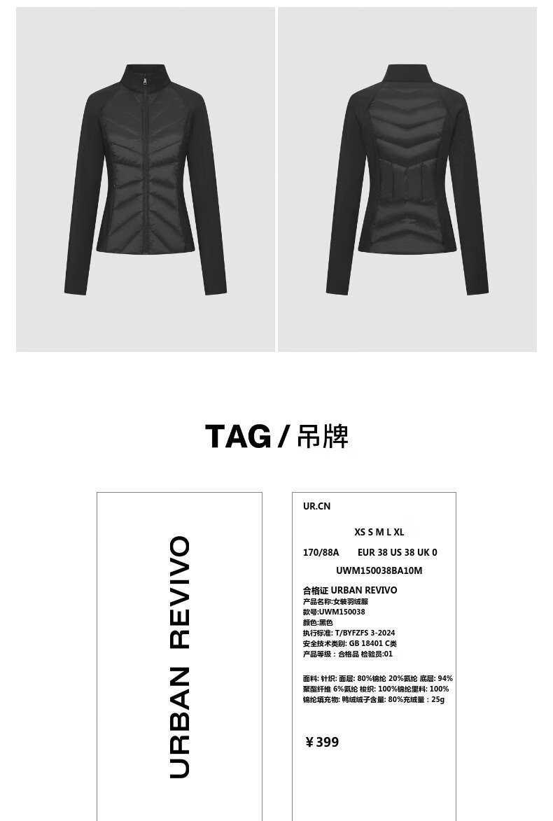 UR2025秋季新款女装休闲简约绗缝收腰羽绒服外套UWM150038