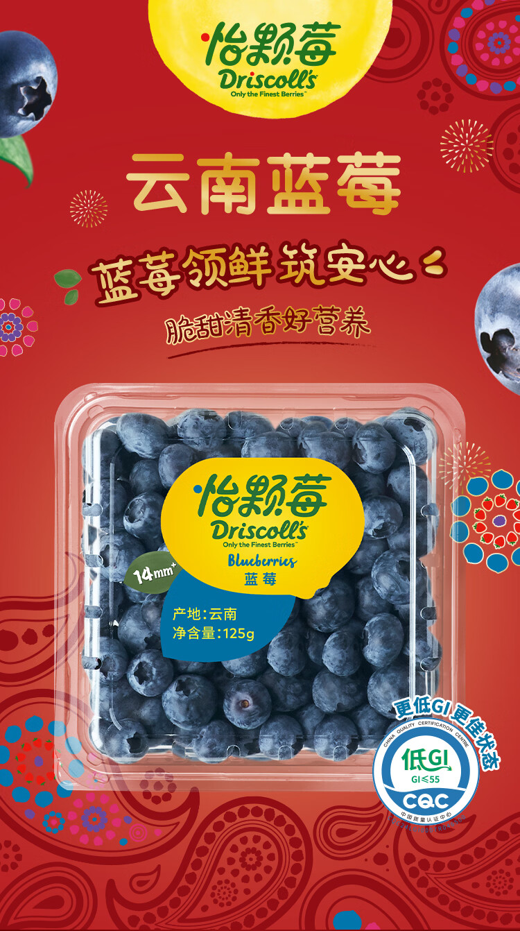 怡颗莓【送礼优选】云南花香蓝莓 当季新鲜蓝莓 高端水果年货礼盒送礼 中果125g*6盒(14mm+)