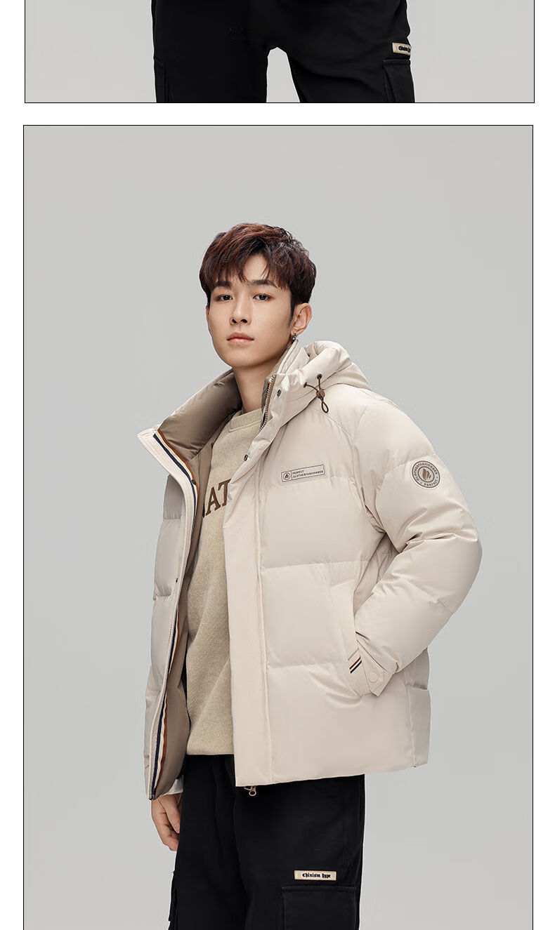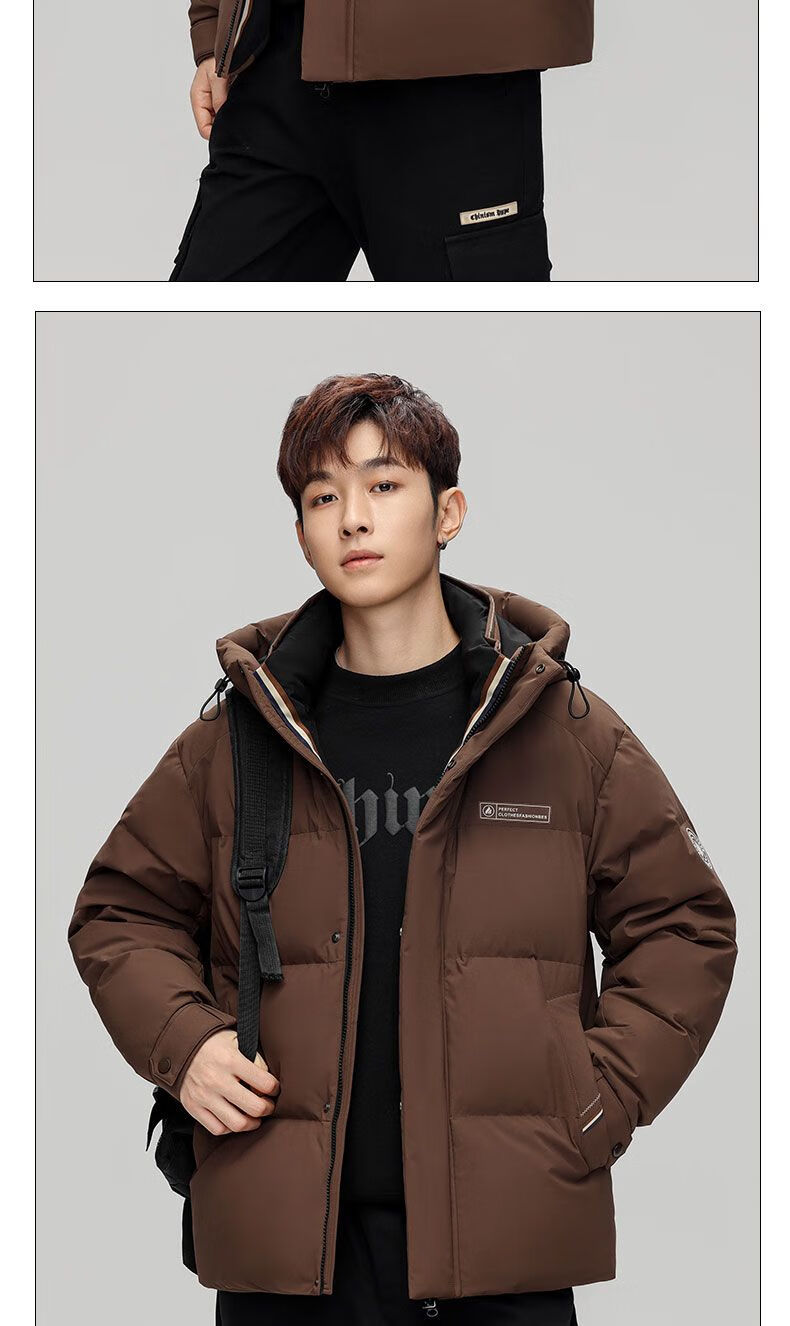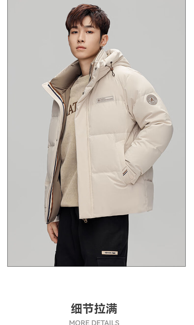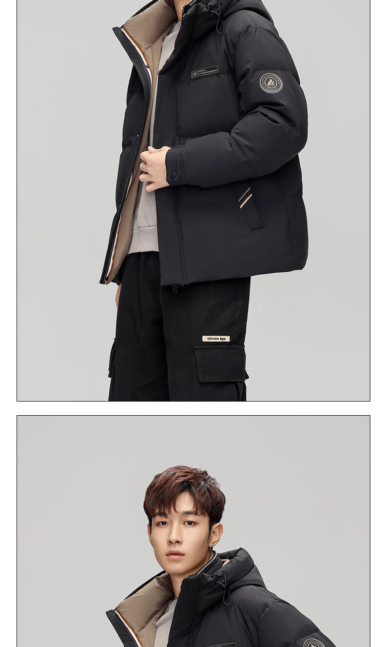 鸭鸭羽绒服男士短款连帽宽松2025加厚保暖冬季青年休闲工装防寒外套男