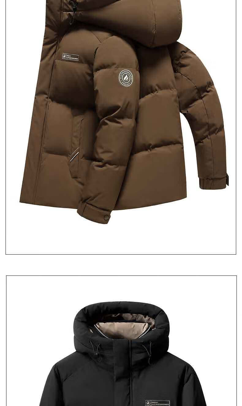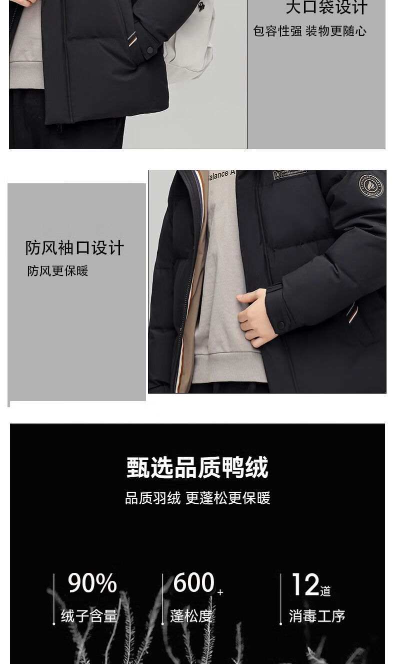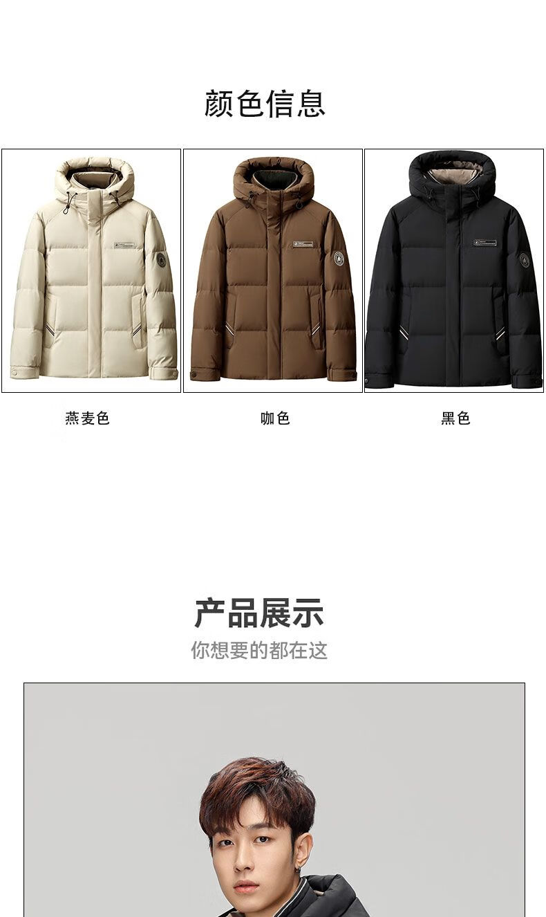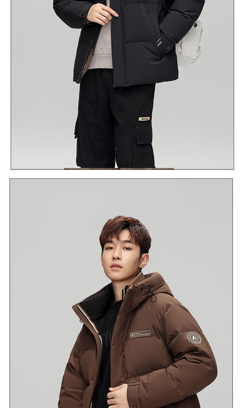 鸭鸭羽绒服男士短款连帽宽松2025加厚保暖冬季青年休闲工装防寒外套男