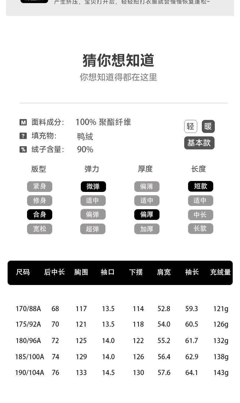鸭鸭王一博同款轻壳系列羽绒服女短款2025冬季新款简约保暖轻薄外套HY 黑色 2XL