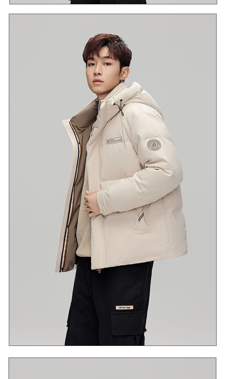 啄木鸟(TUCANO)羽绒服男款外套冬季加厚保暖防寒休闲连帽面包服上衣 灰白 XL