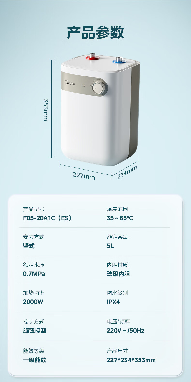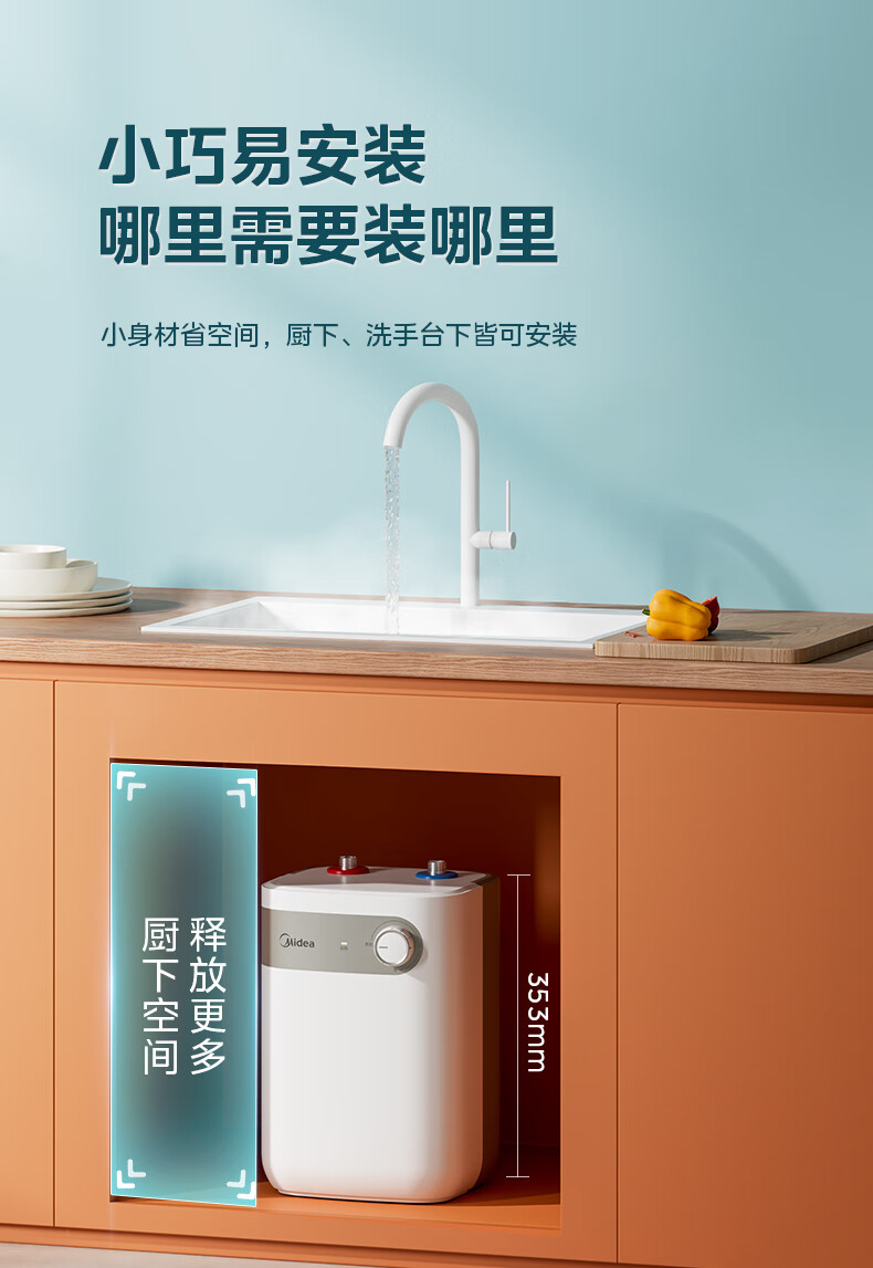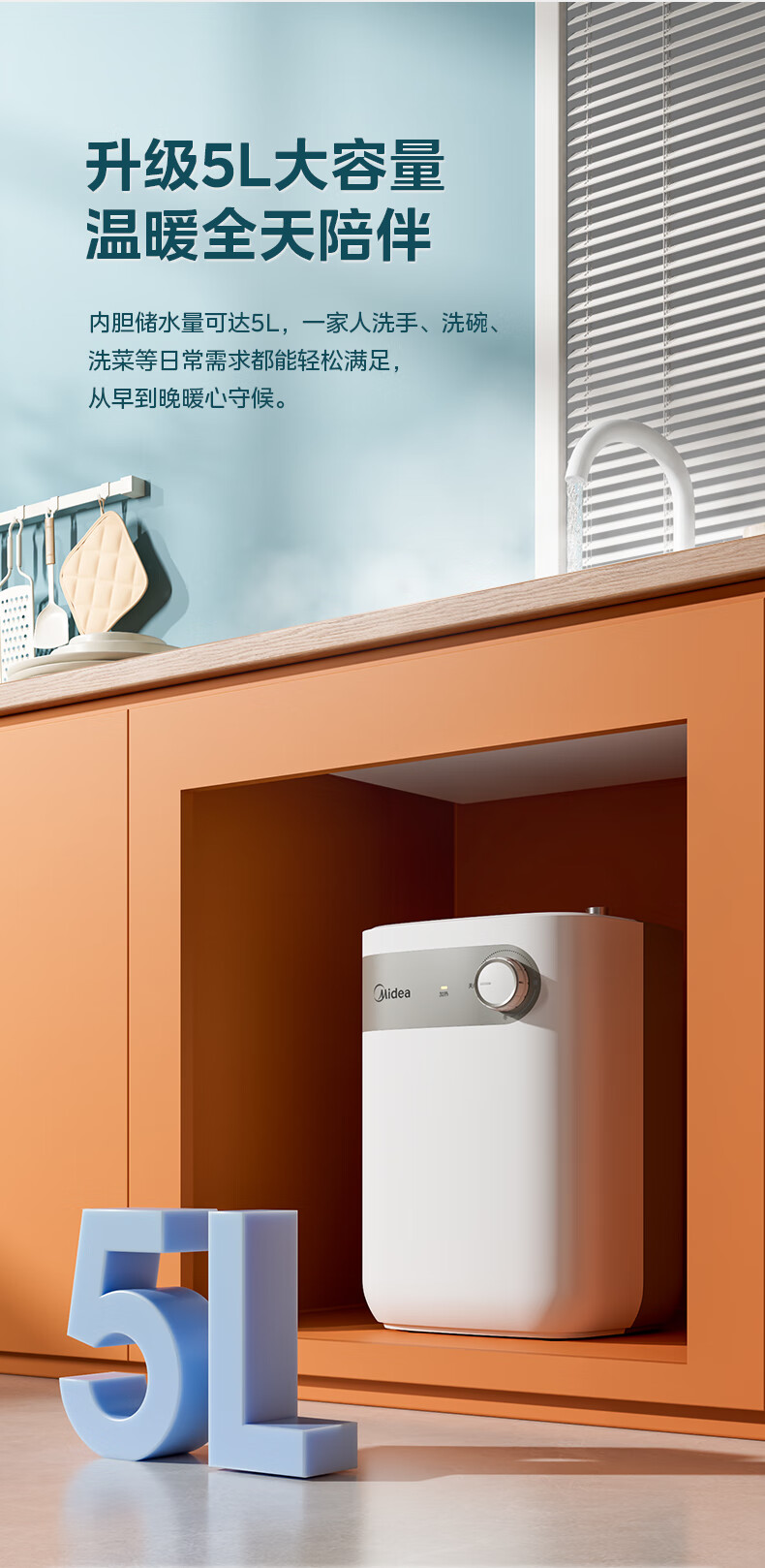 美的(Midea)【8年质保】小厨宝电热水器5升储水式家用一级能效2000W洗菜碗厨房热水宝国家补贴F05-20A1C(ES)