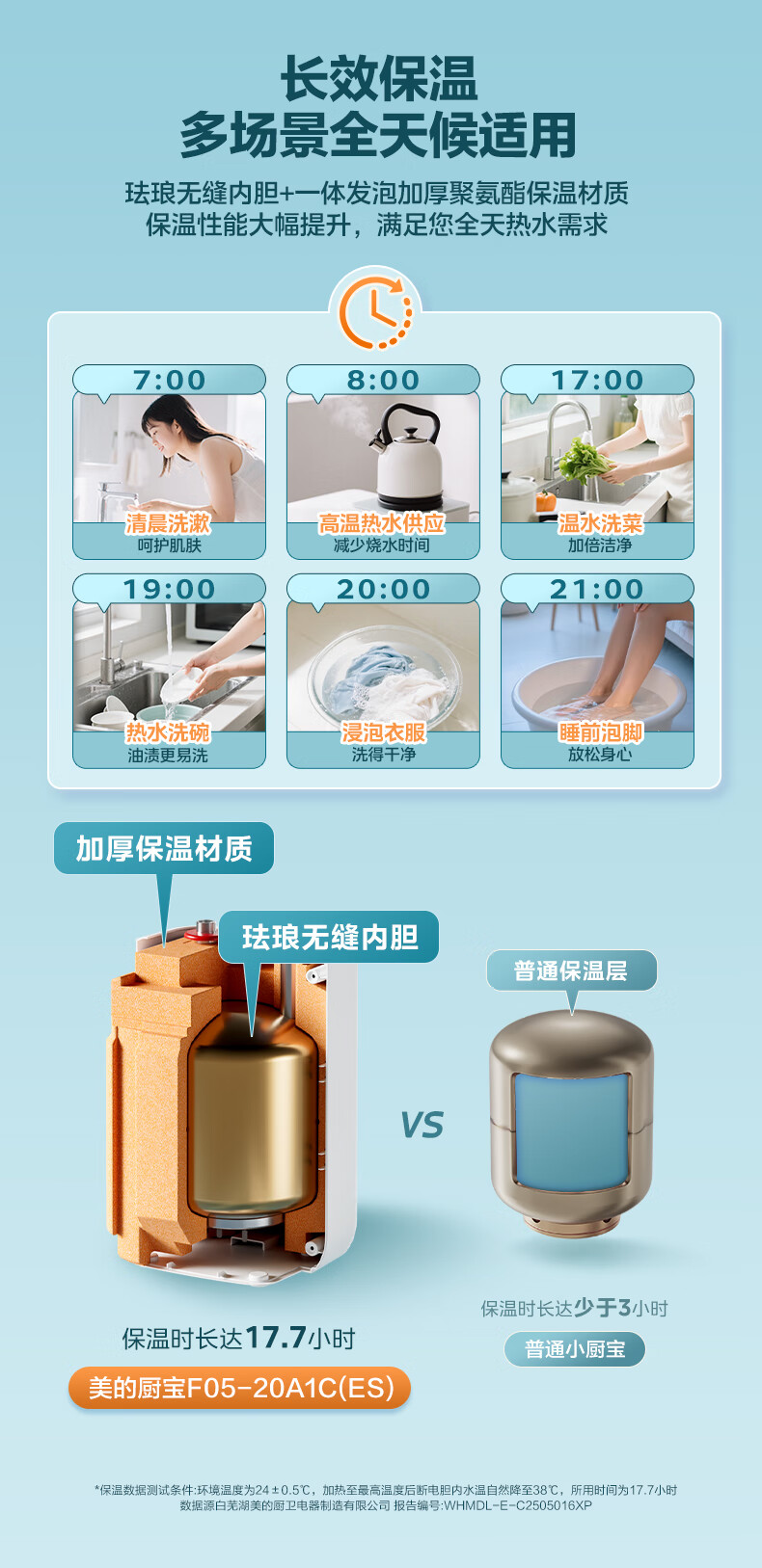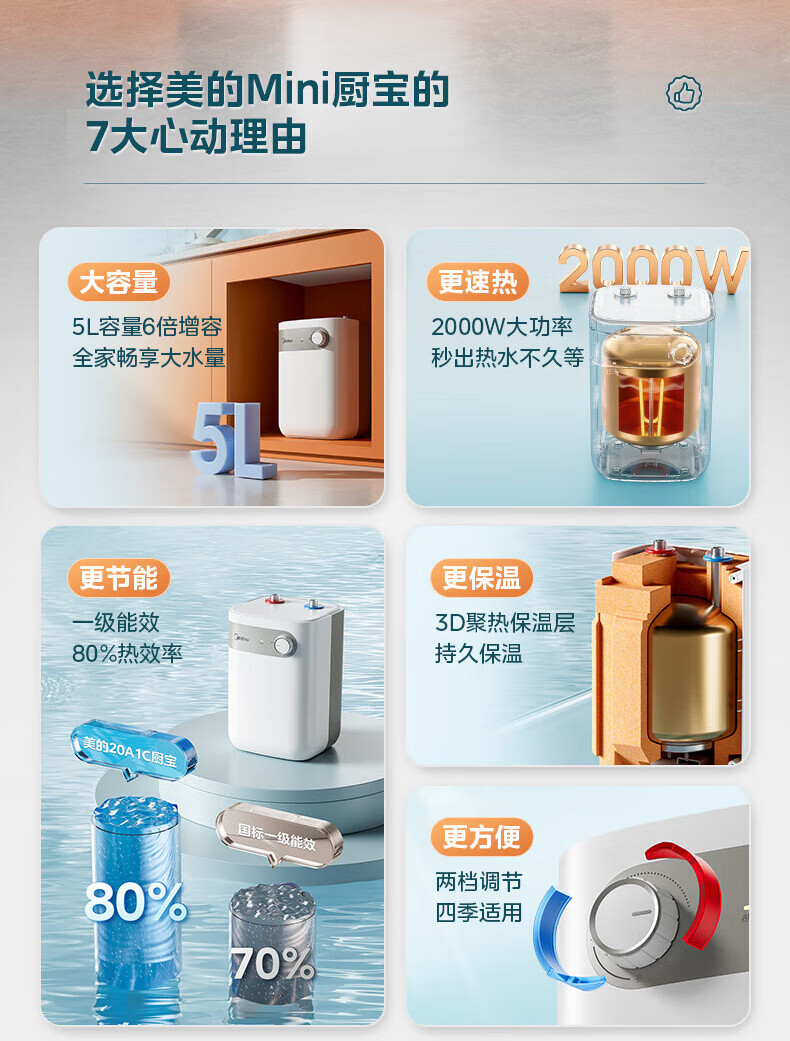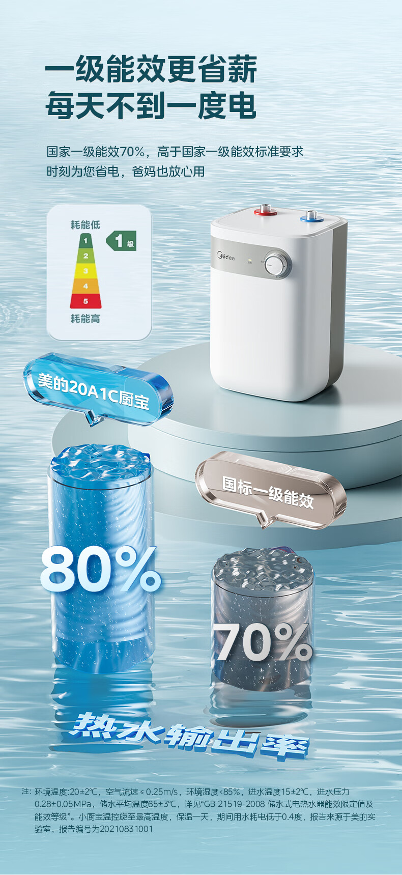 美的(Midea)【8年质保】小厨宝电热水器5升储水式家用一级能效2000W洗菜碗厨房热水宝国家补贴F05-20A1C(ES)