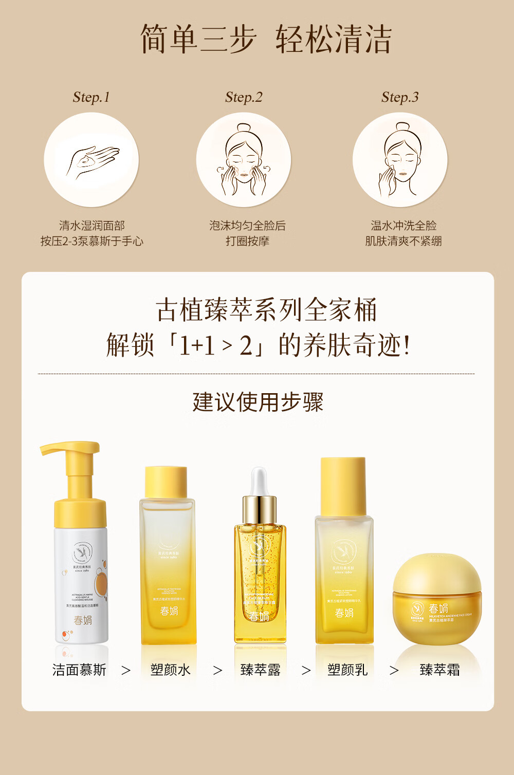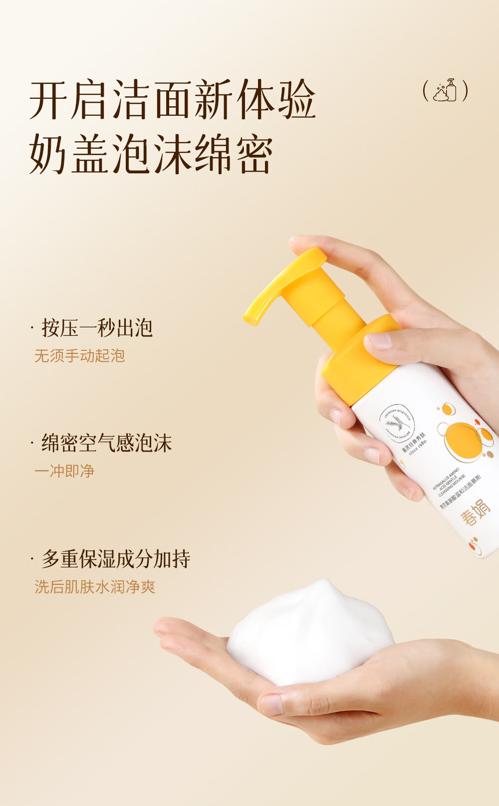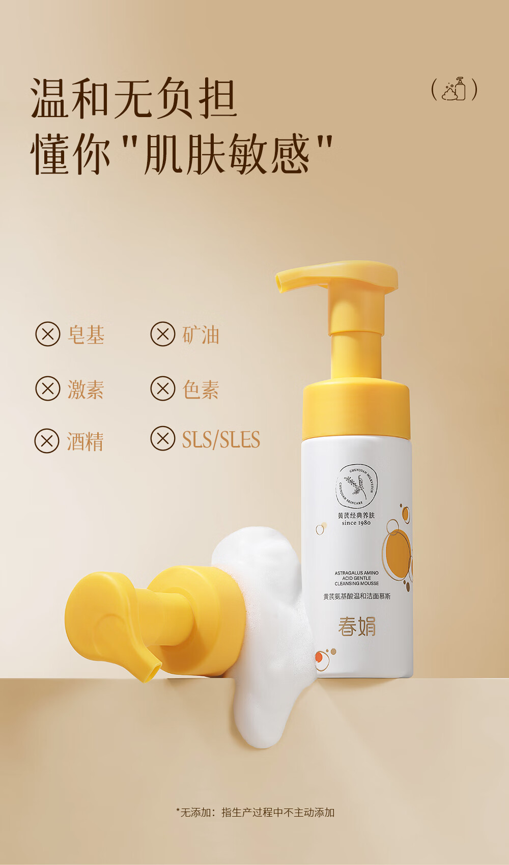 春娟黄芪氨基酸温和洁面慕斯150ml 古植清洁洗面奶绵密泡沫学生 洁面慕斯150ml