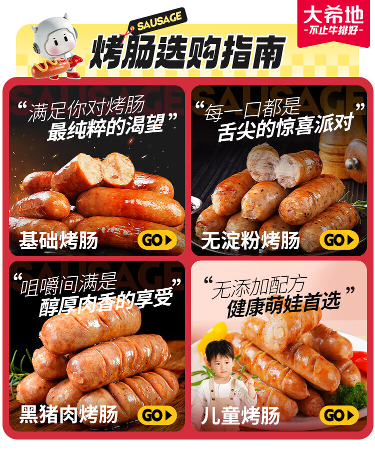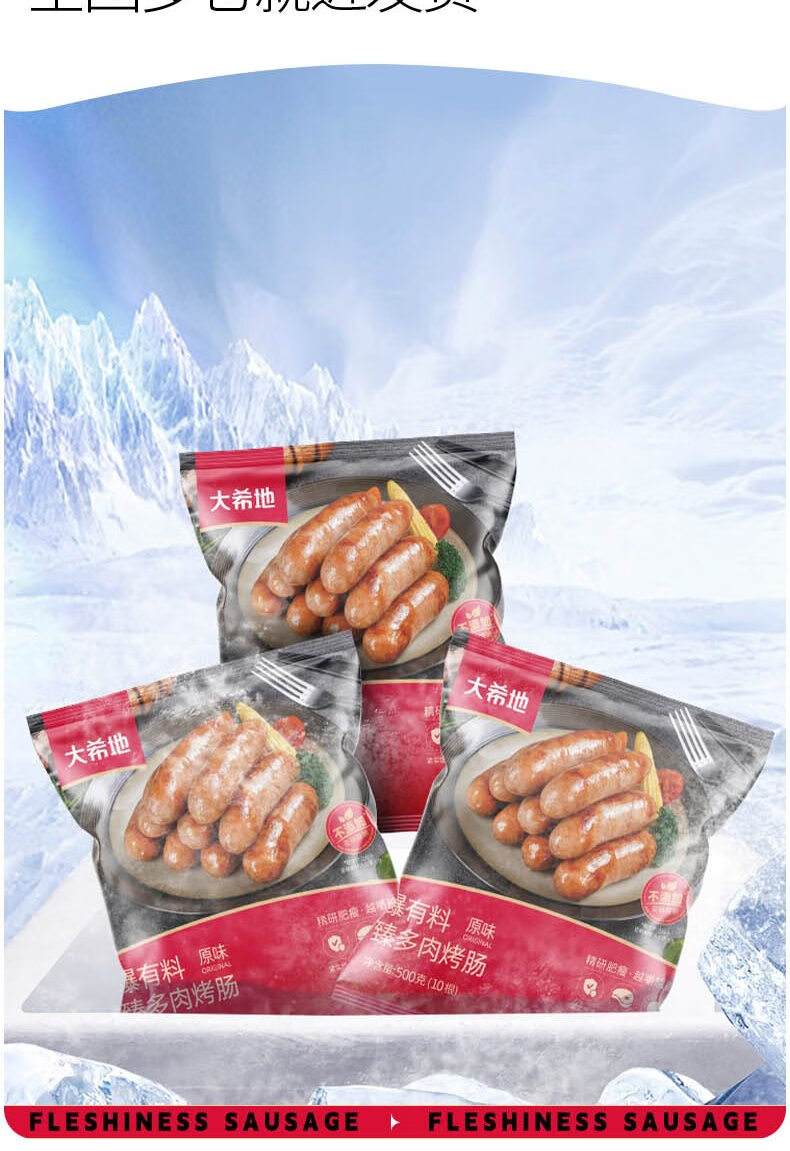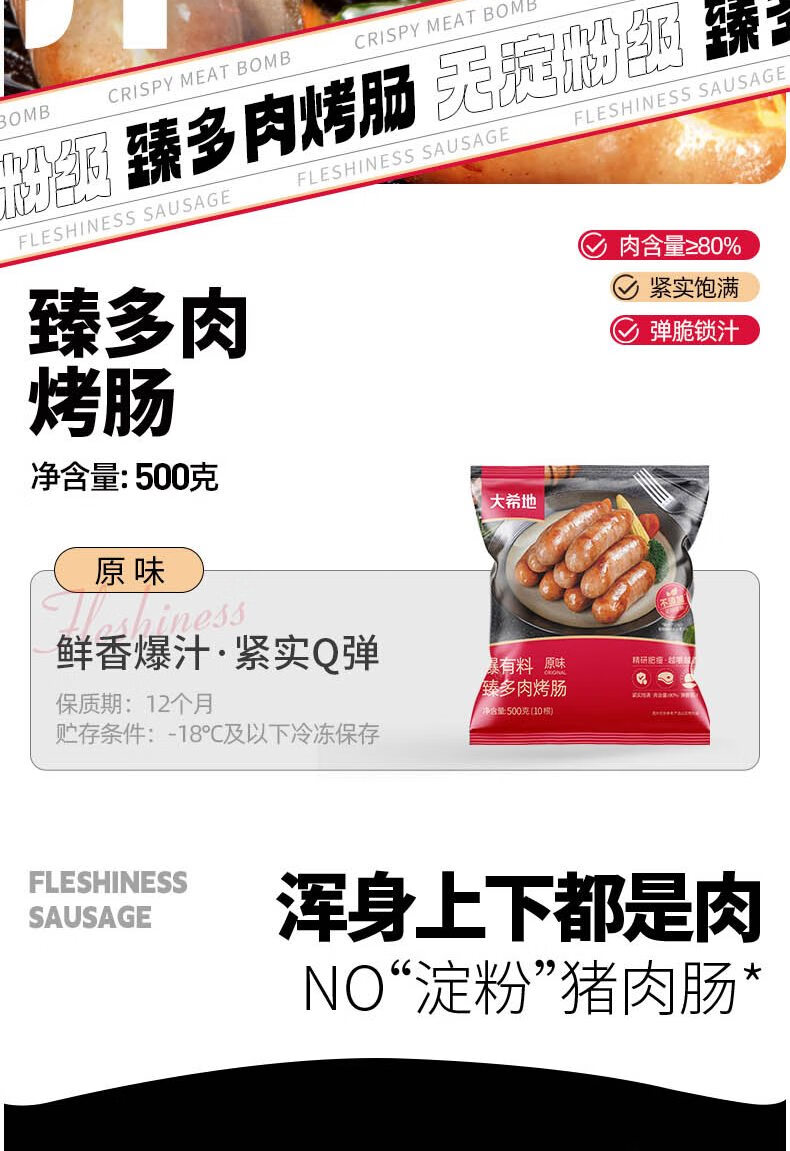大希地无淀粉火山石烤肠原味 2斤/20根 早餐香肠火腿肠肉肠春节也送货