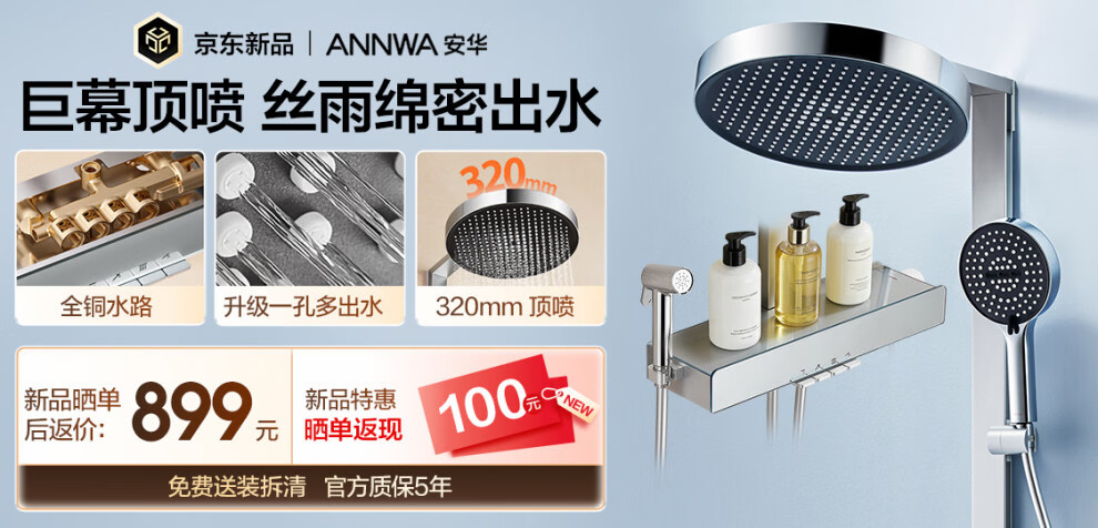 法恩莎(FAENZA)【门店同款】钢琴键置物台方管四功能一键止水增压淋浴花洒套装 【一键止水-银色E650】F4M9142CP-1
