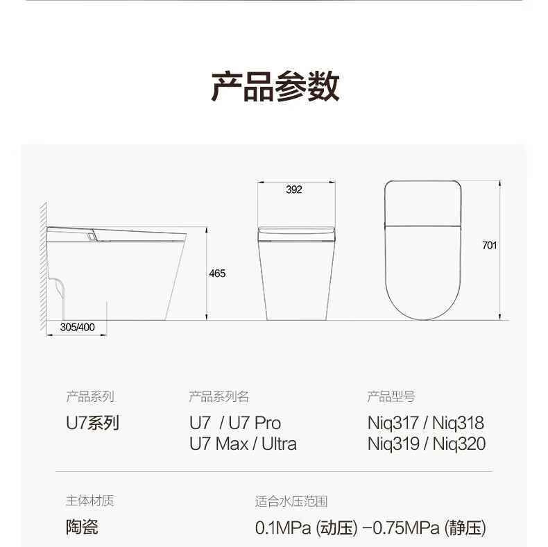 安华轻智能马桶U7系列免水压带水箱泡沫盾虹吸式落地坐便器座便器 U7 Ultra【70%顾客首选】4D云朵泡沫盾+微波感应 305坑距(适用290~380mm)