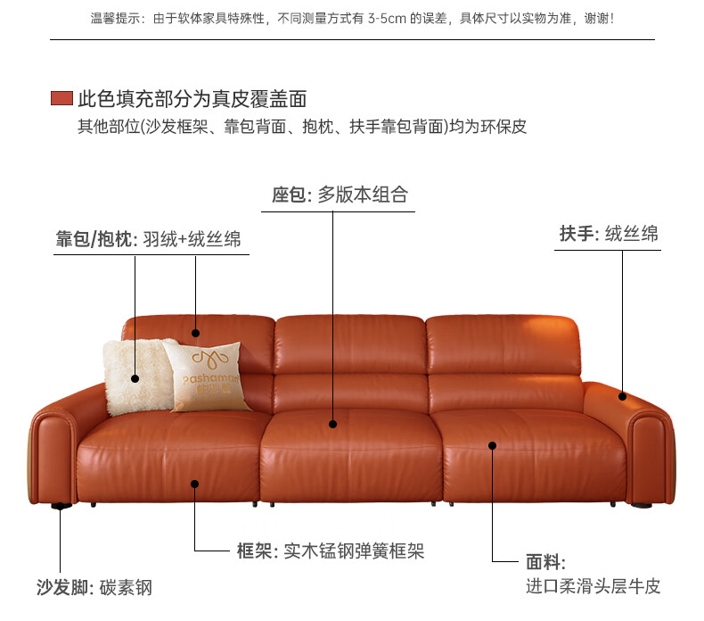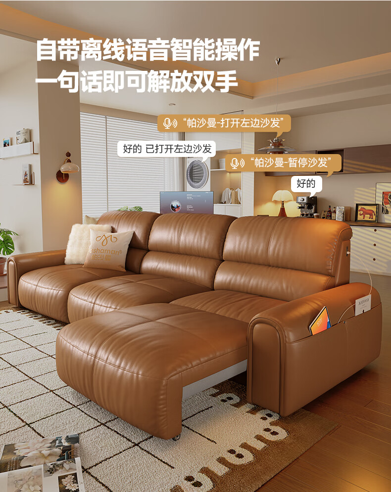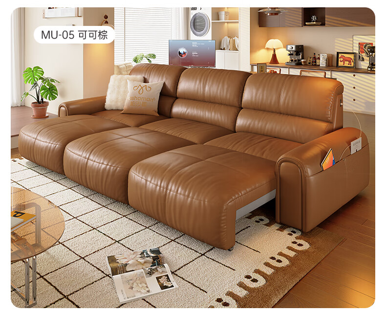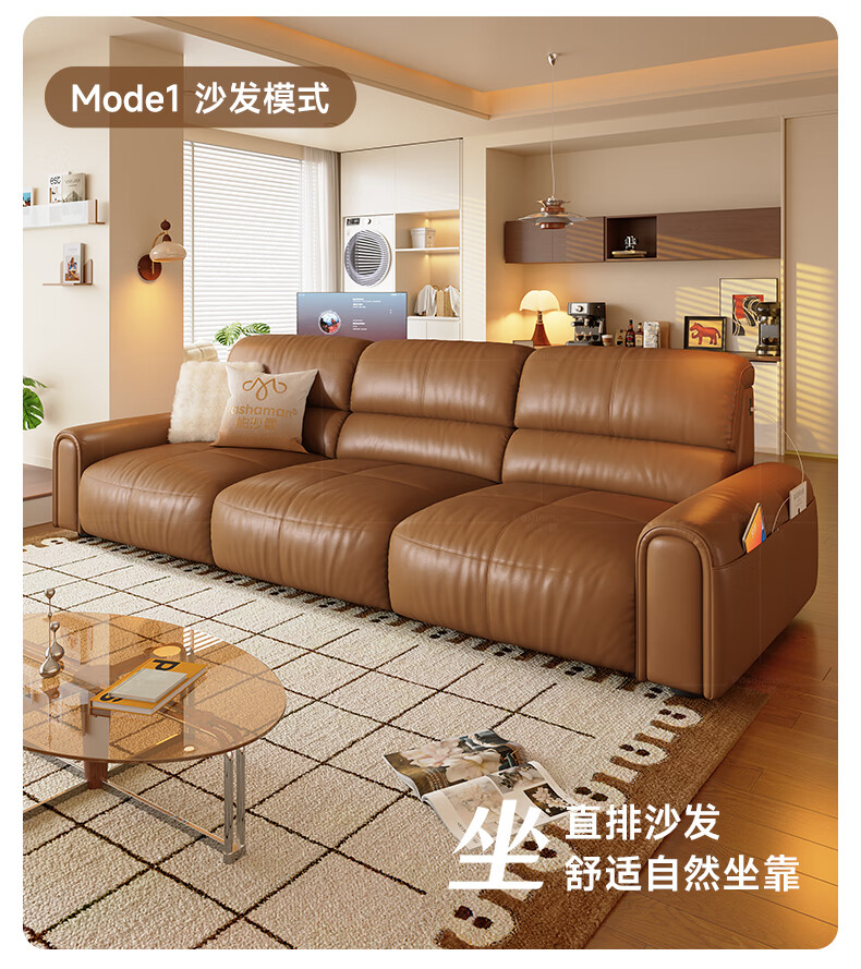 帕沙曼多功能电动沙发床法式复古头层牛皮真皮沙发客厅2025新款7176ZP 2.42米多人位·双电动 【舒享版】进口头层牛皮MU( 轻弹棉+竹炭海绵)