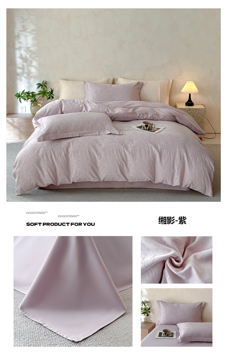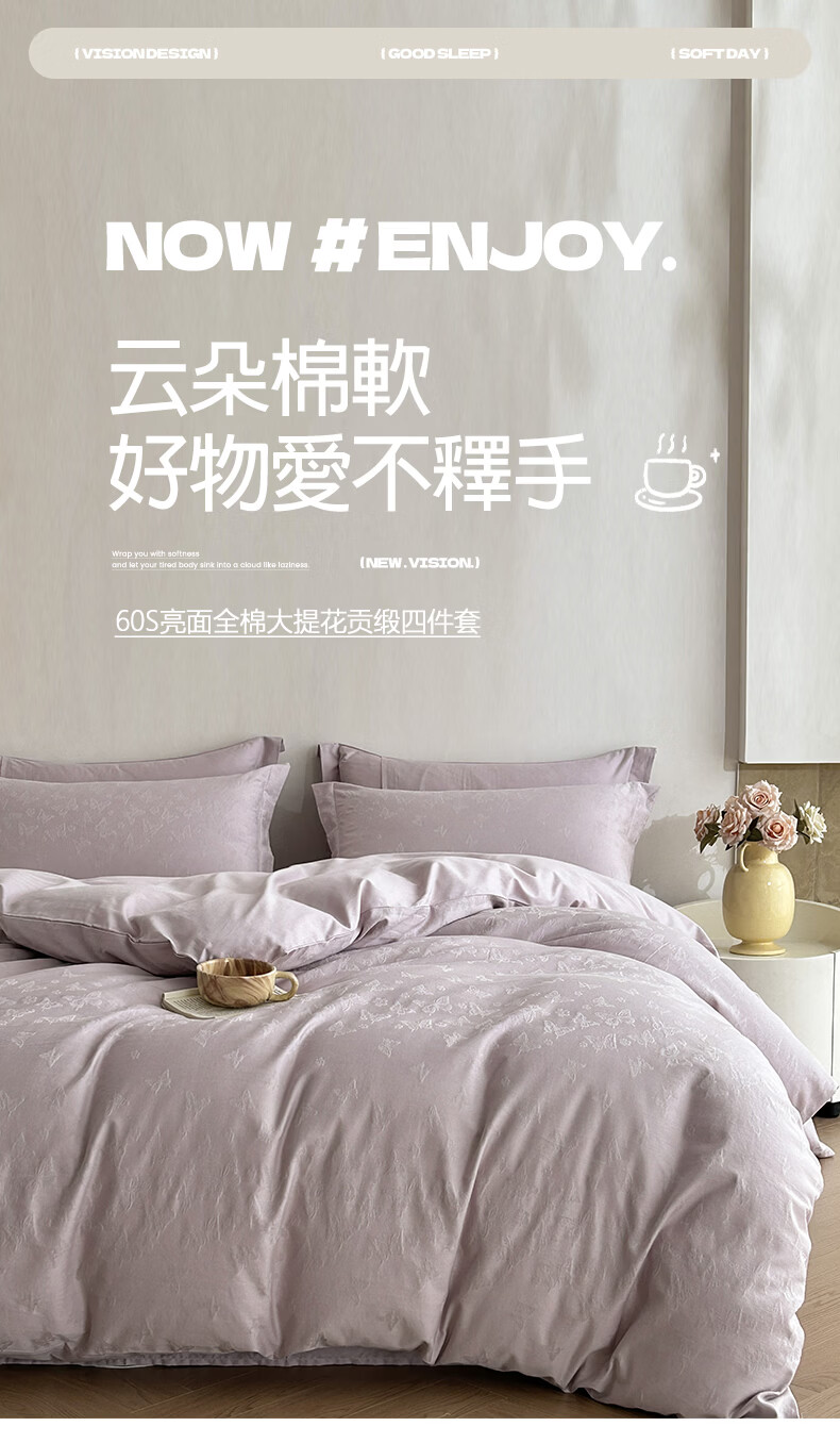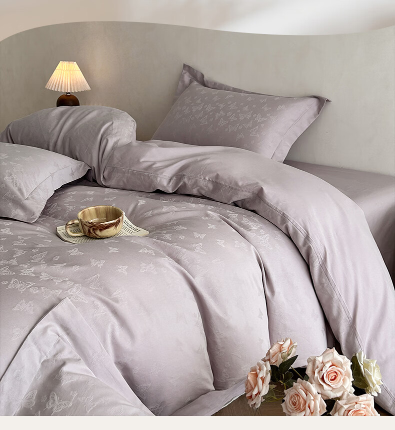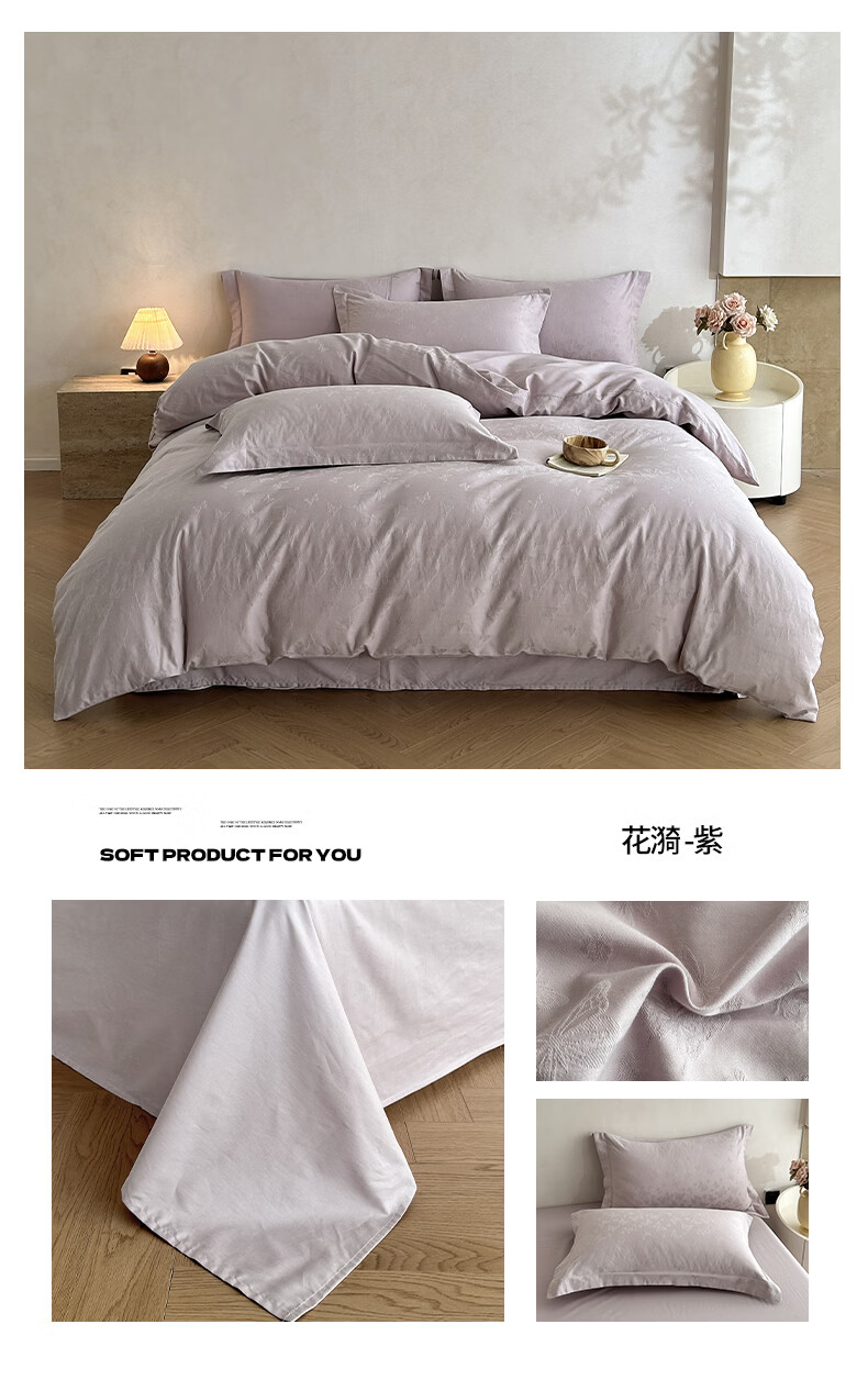 一默四件套纯棉A类60支长绒棉2026新款床品高级轻奢贡缎大提花四件套 花漪-紫 2.0m 床单款 (被套200*230cm) 四件套