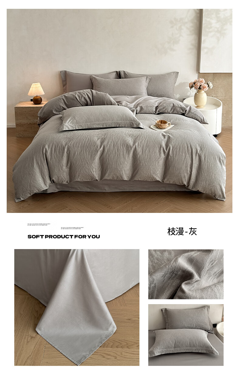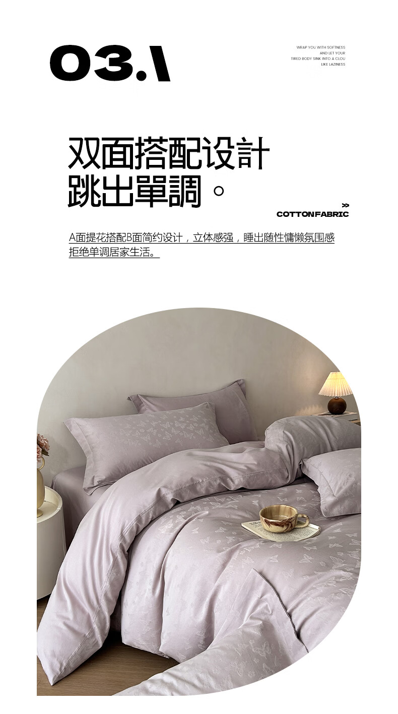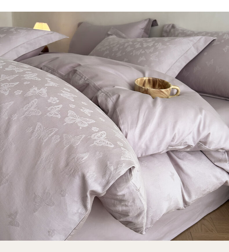 一默四件套纯棉A类60支长绒棉2026新款床品高级轻奢贡缎大提花四件套 花漪-紫 2.0m 床单款 (被套200*230cm) 四件套