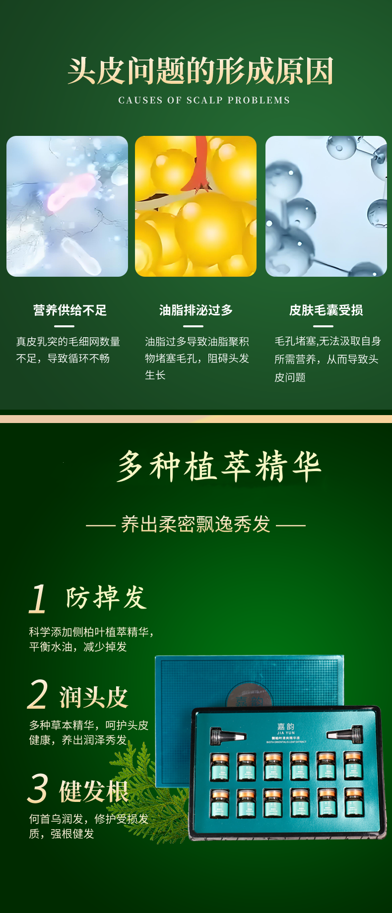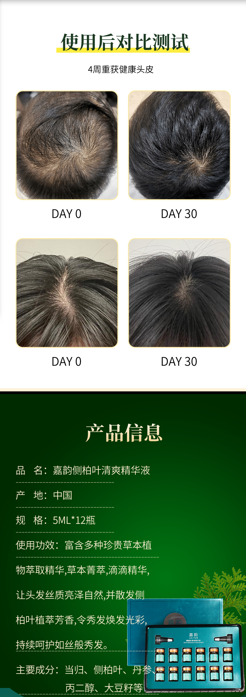 嘉韵侧柏叶防i脱育i发精华液强效套盒发际线增长液增i发密i发男女生 (囤货装)十套盒120瓶