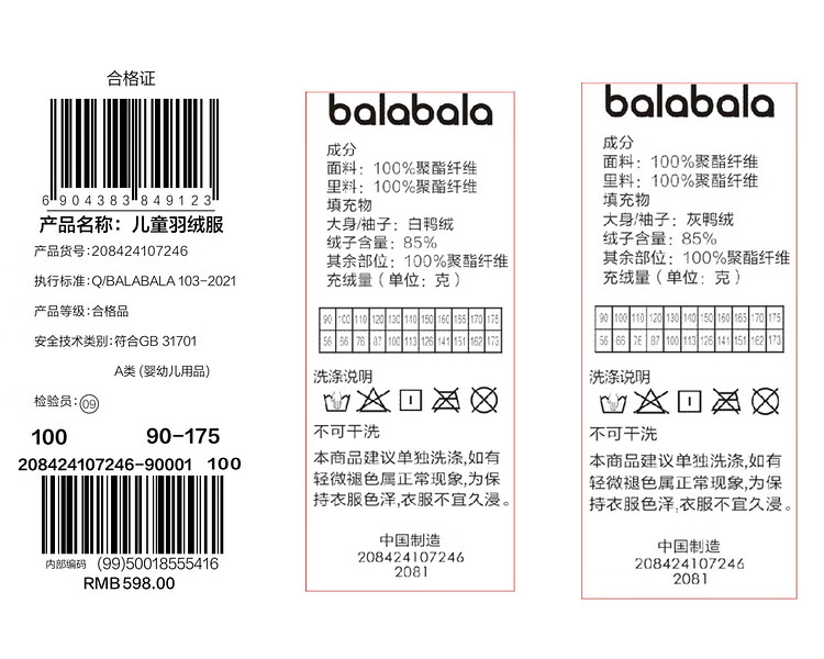 巴拉巴拉童装儿童羽绒服新男童外套女童冬季连帽宝宝大童小童