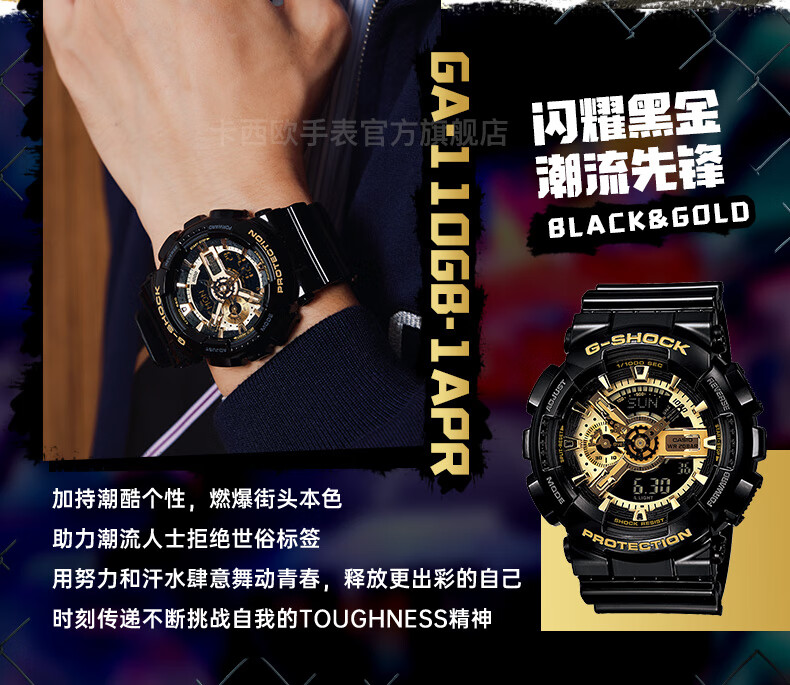 卡西欧(CASIO) G-SHOCK 卡西欧黑金运动男士手表石英电子表送男士友礼物礼物 GA-110GB-1APR-200米防水