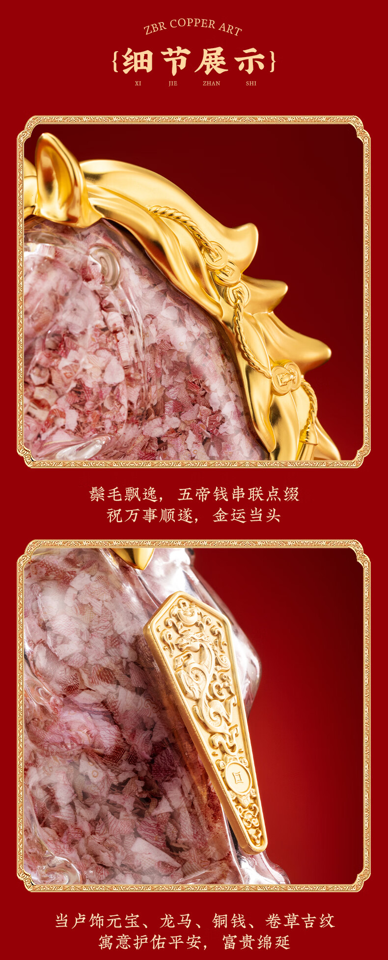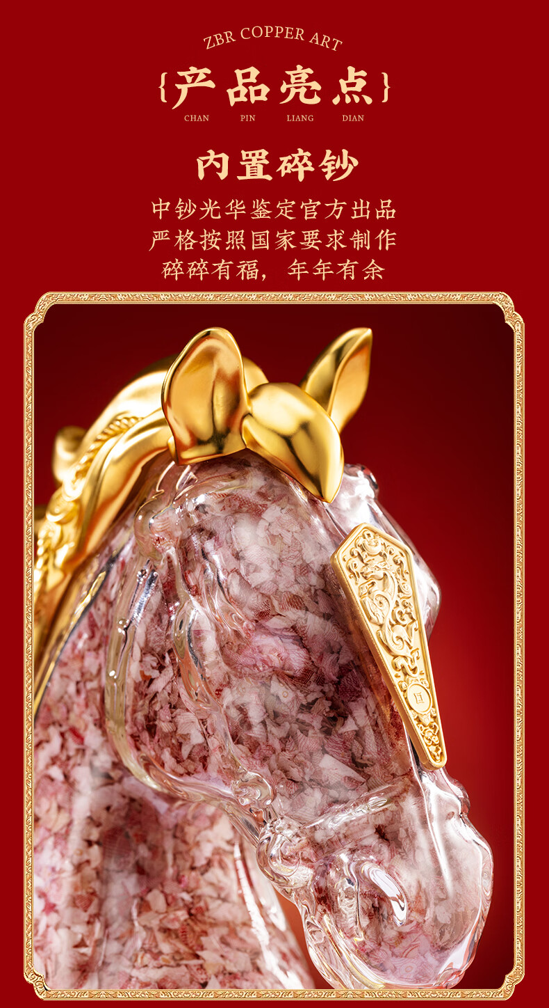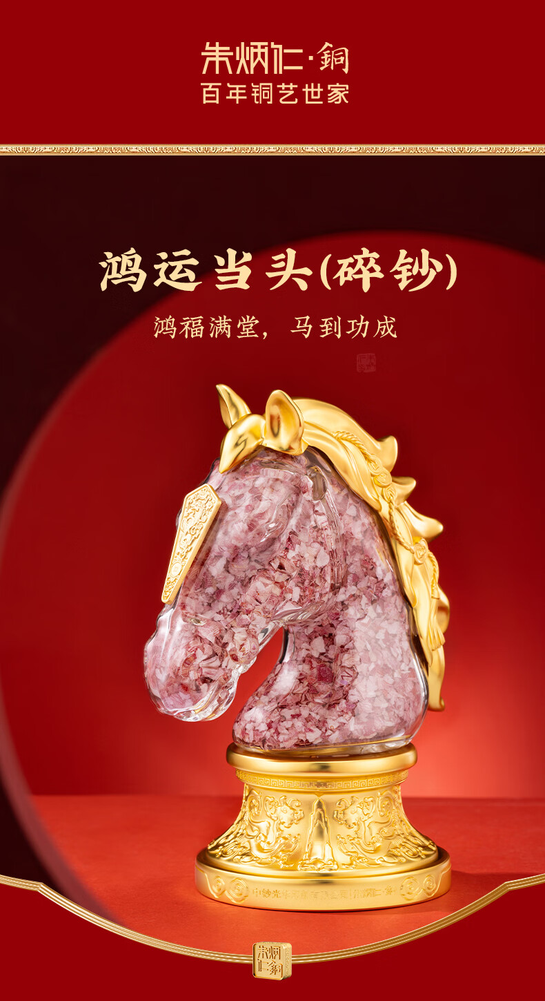 朱炳仁铜 鸿运当头 精美书房客厅职场办公室桌面铜碎钞马摆件礼赠品 鸿运当头