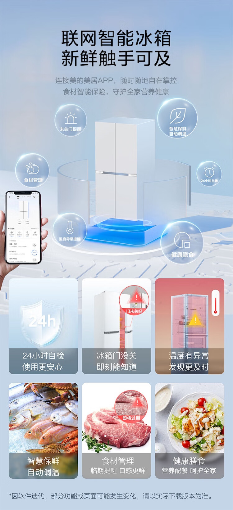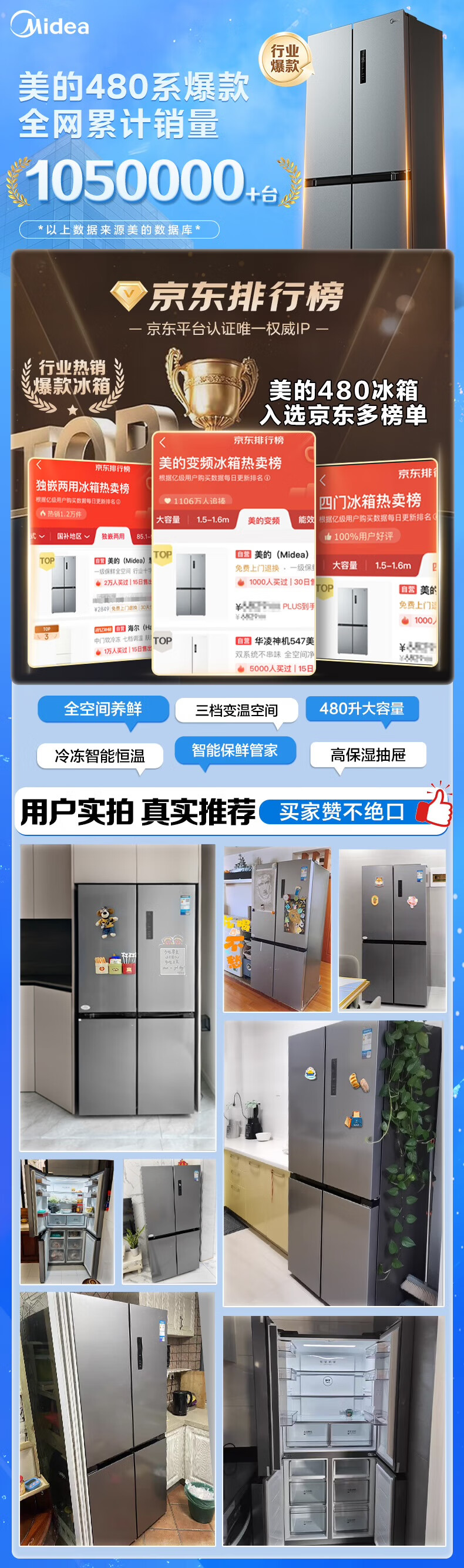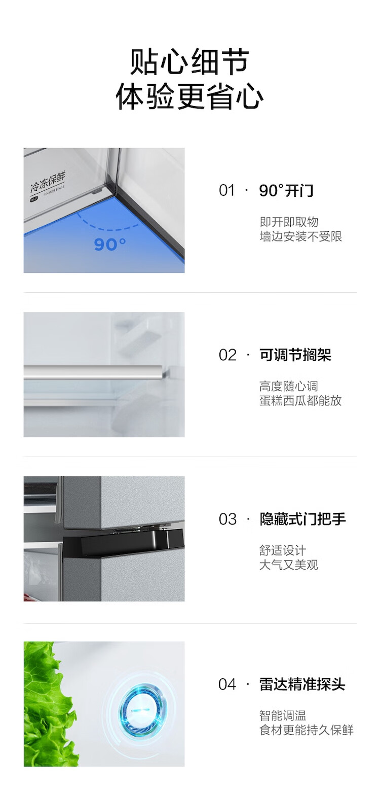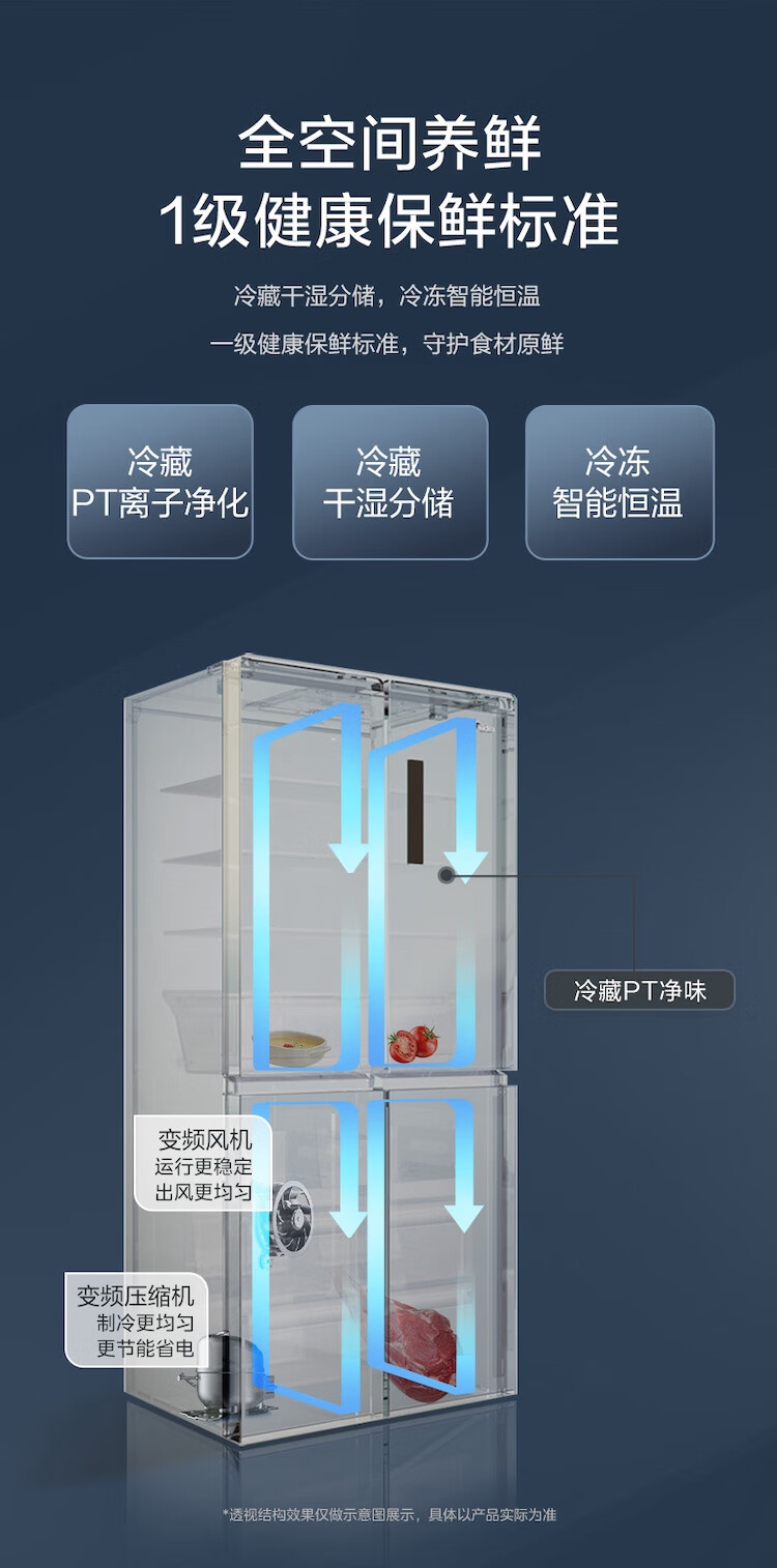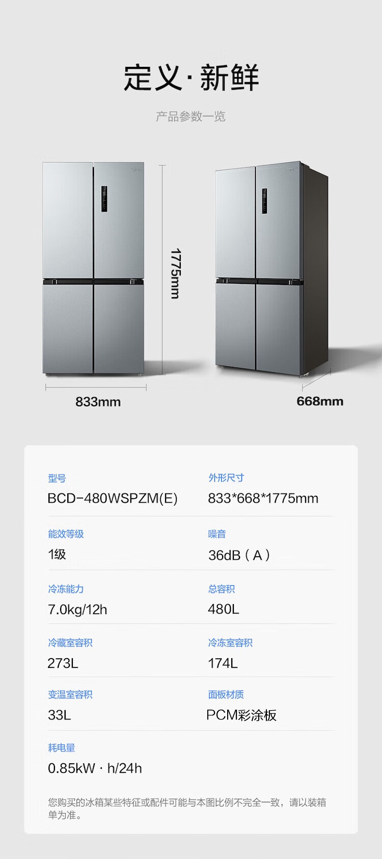 美的冰箱480升十字四开门慧鲜系列双循环双变频三挡变温净味一级能效风冷无霜BCD-480WSPZM(E)国家补贴