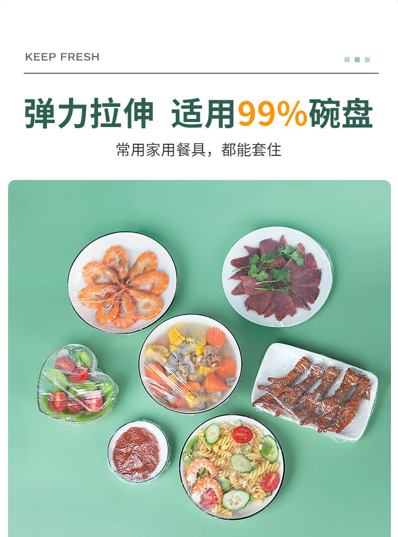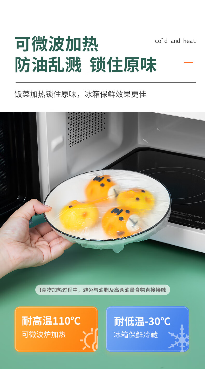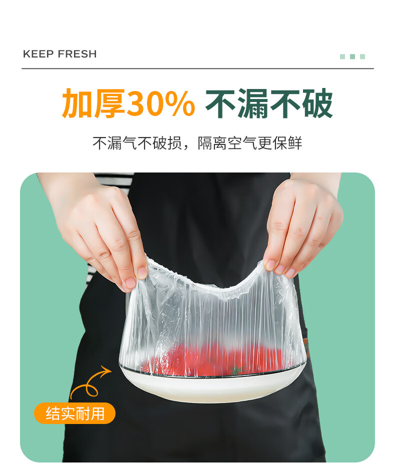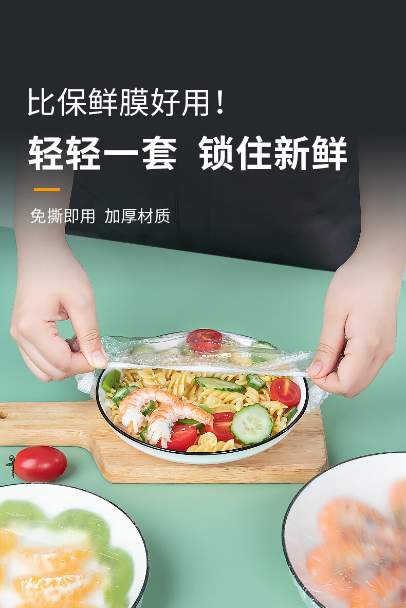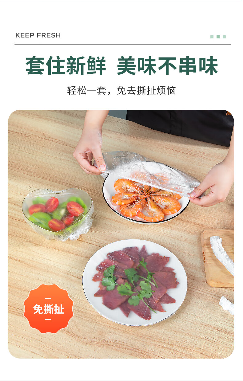 屋田一次性保鲜膜套罩300只食品级保鲜罩保鲜袋防尘罩 大小通用可微波
