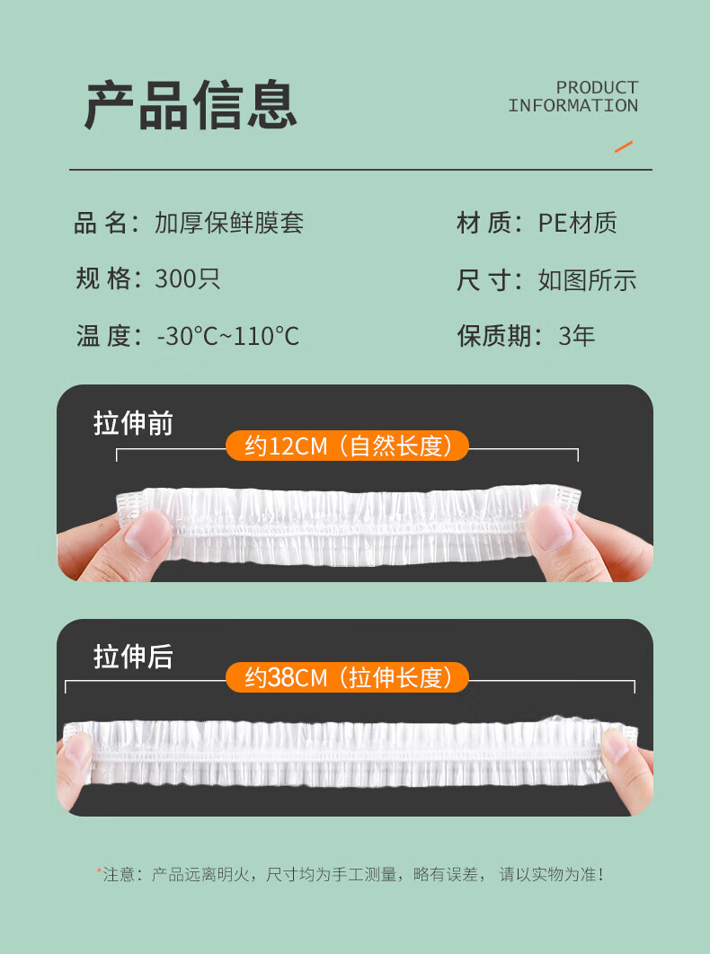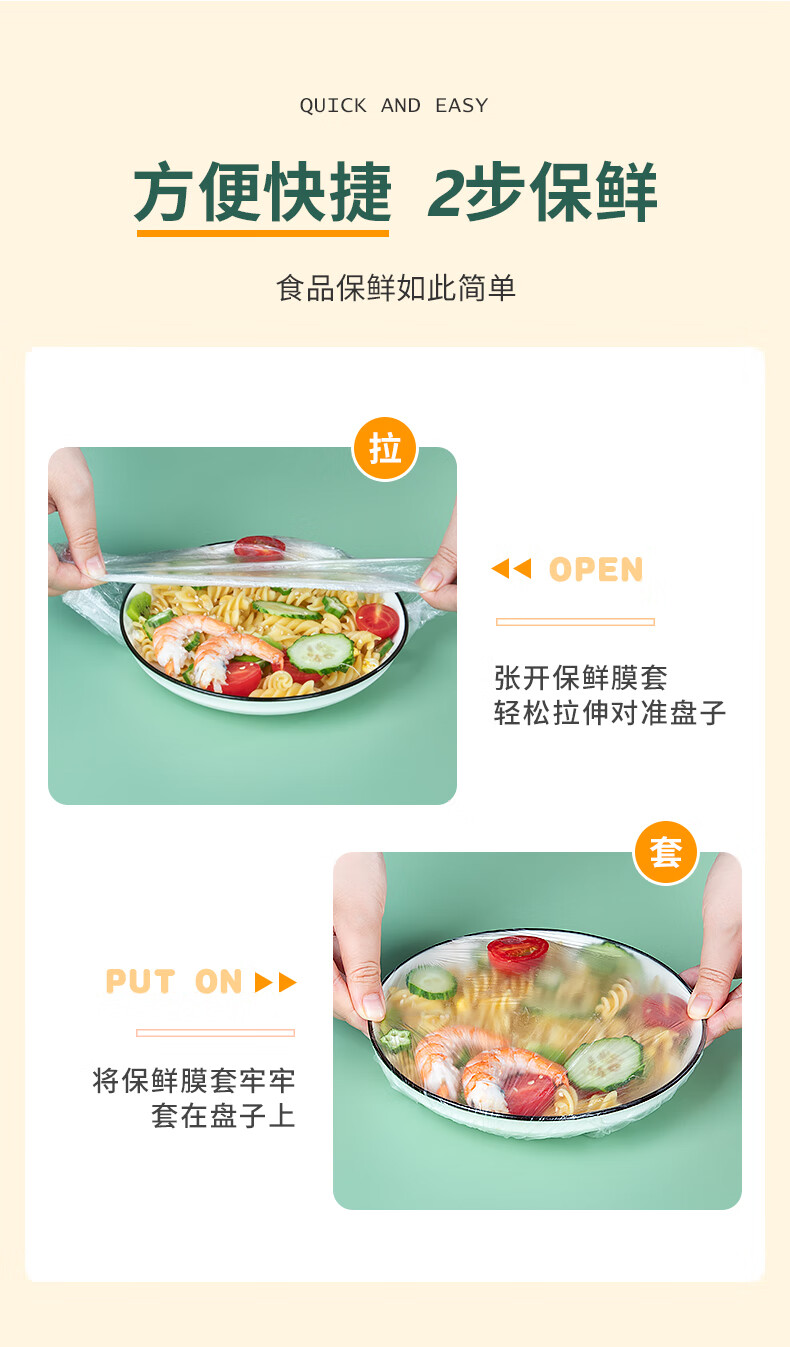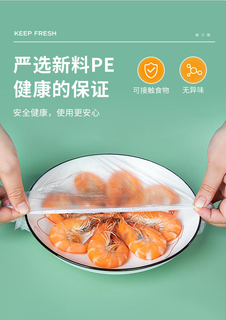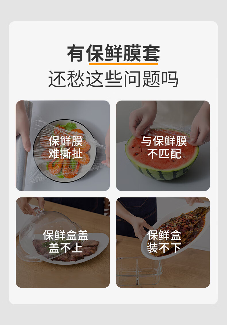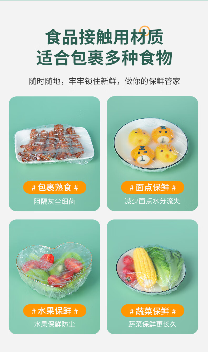 屋田一次性保鲜膜套罩300只食品级保鲜罩保鲜袋防尘罩 大小通用可微波