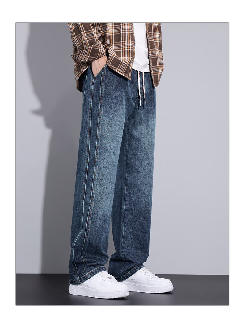 真维斯(Jeanswest)2026春夏季新款牛仔裤直筒百搭美式潮流简约阔腿舒适时尚男长裤子 9856蓝色 M