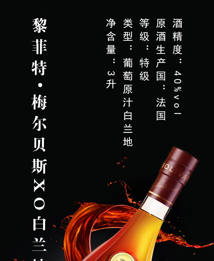 瓦尔加尔【大瓶礼盒装】梅尔贝斯XO白兰地40度3L洋酒法国原酒自饮调酒基酒 3000mL 1瓶
