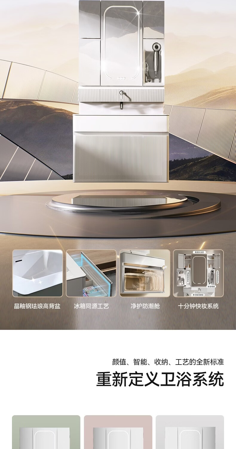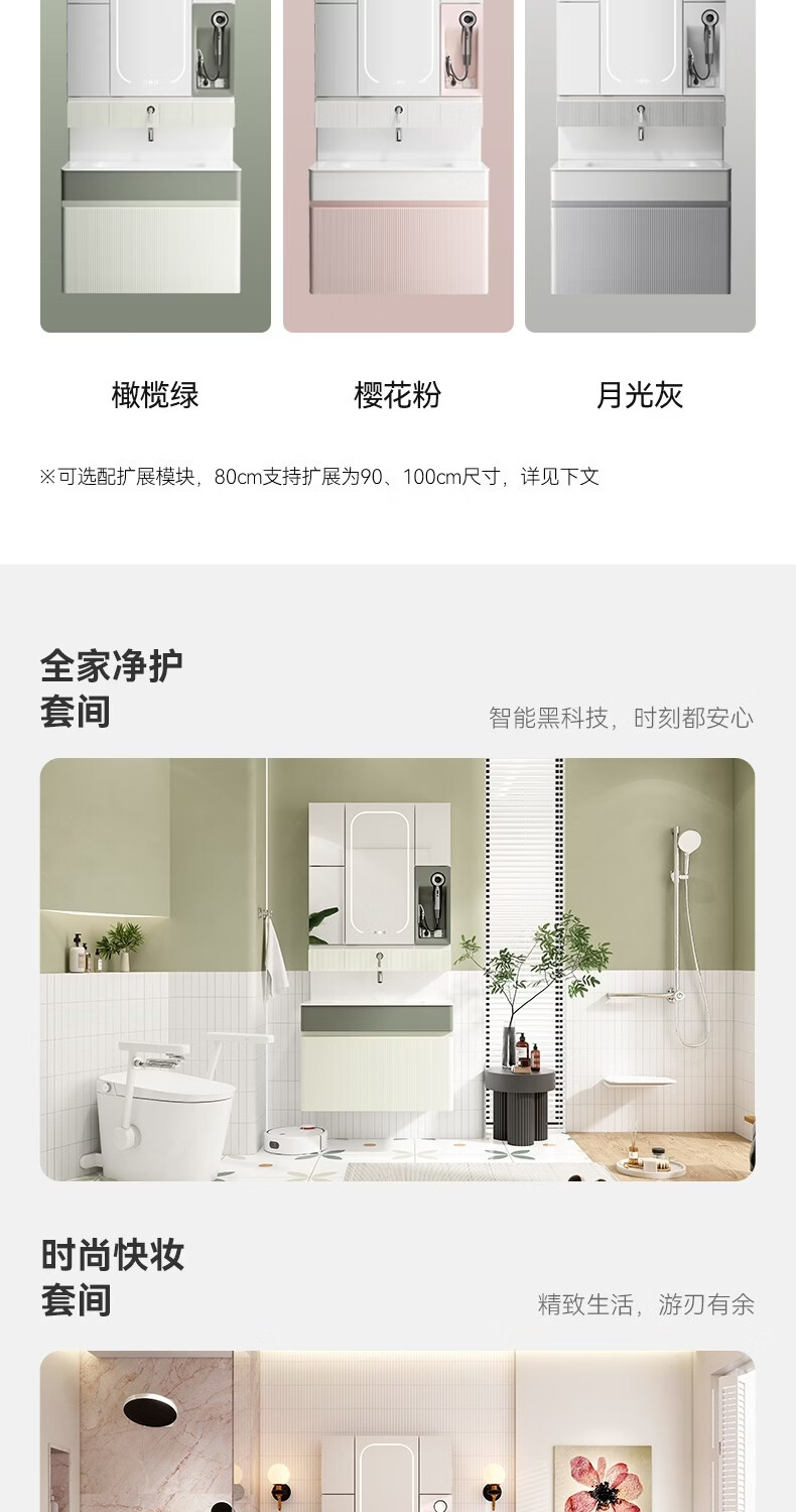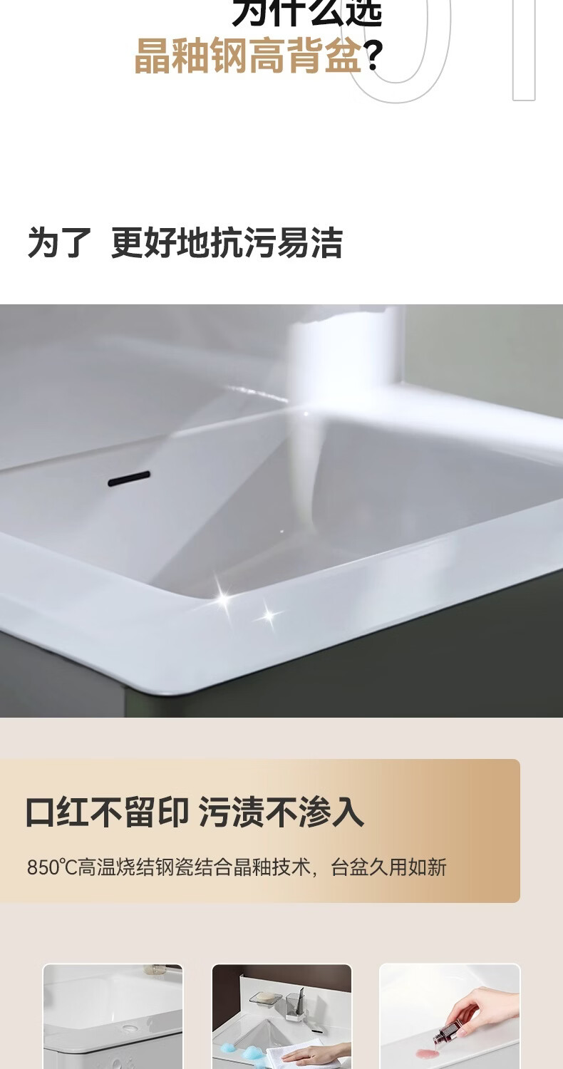 恒洁【单独主柜不含镜柜】浴室柜主柜E0级板材陶瓷一体盆2500Z 【主柜+海洋盆不含镜柜】80CM