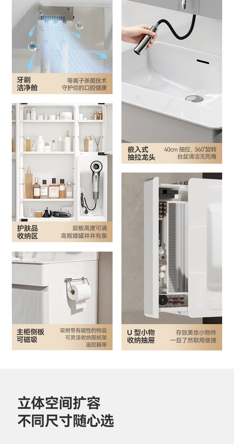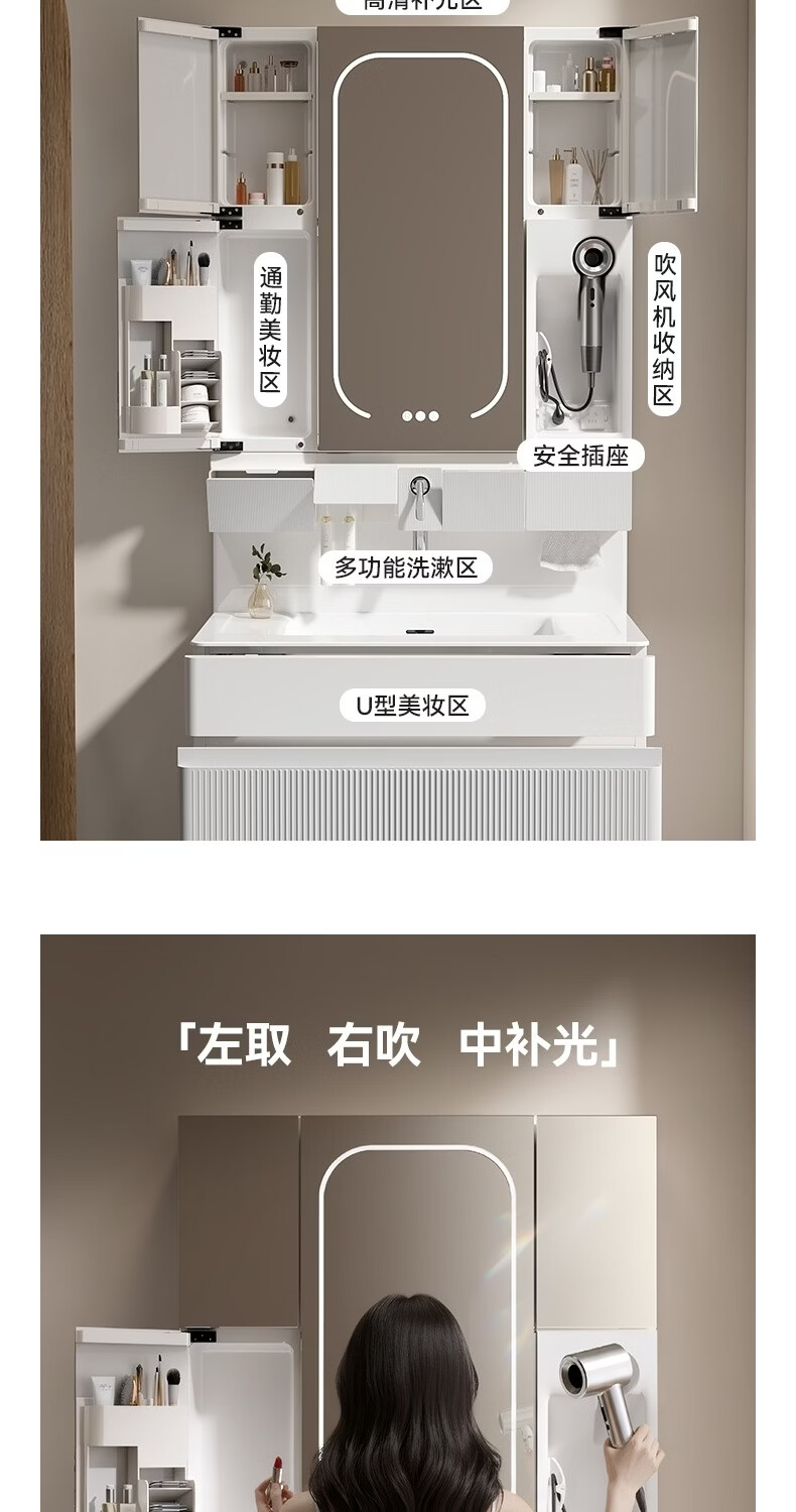 恒洁【单独主柜+盆不含镜柜】浴室柜主柜双开门大储物空间2503S 【主柜+盆不含镜柜】80CM