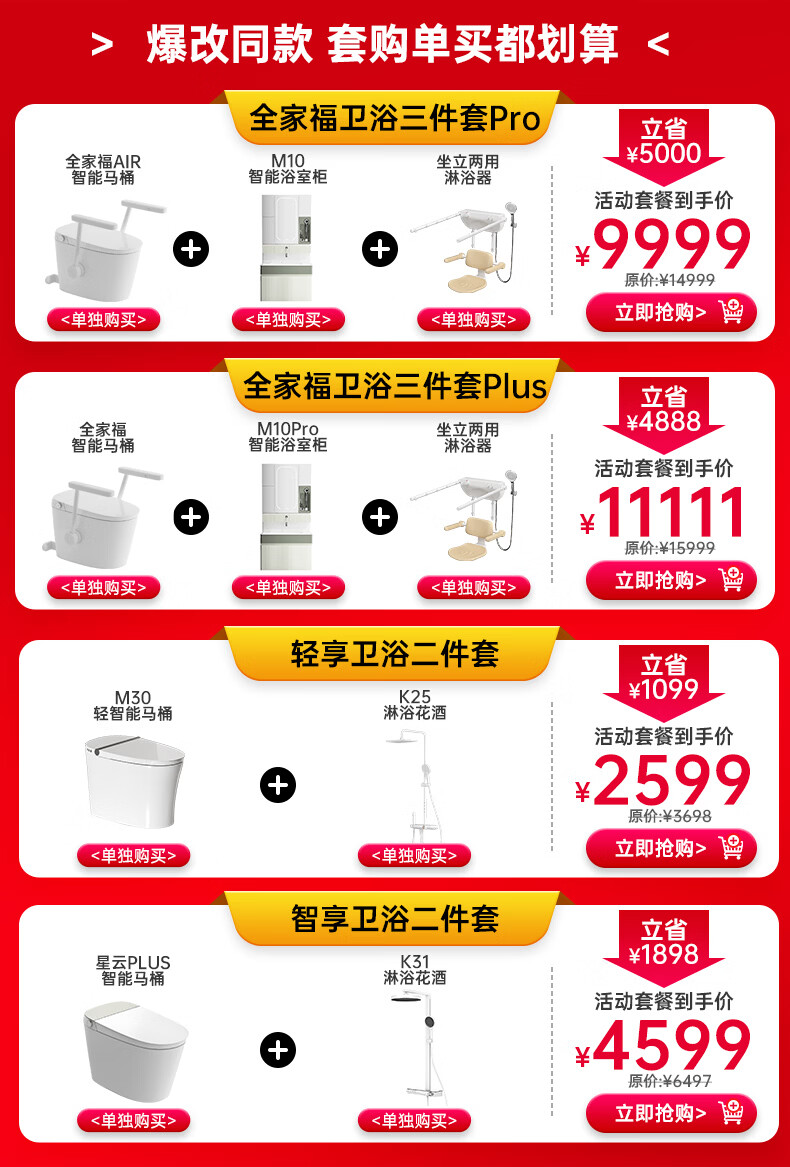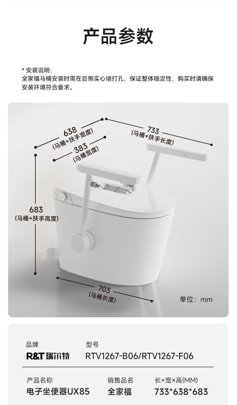 瑞尔特(R&T)全家福卫浴三件套一价全包带扶手马桶新物种浴室柜坐式淋浴器 【爆改同款】全家福卫浴三件套Plus 305/300mm