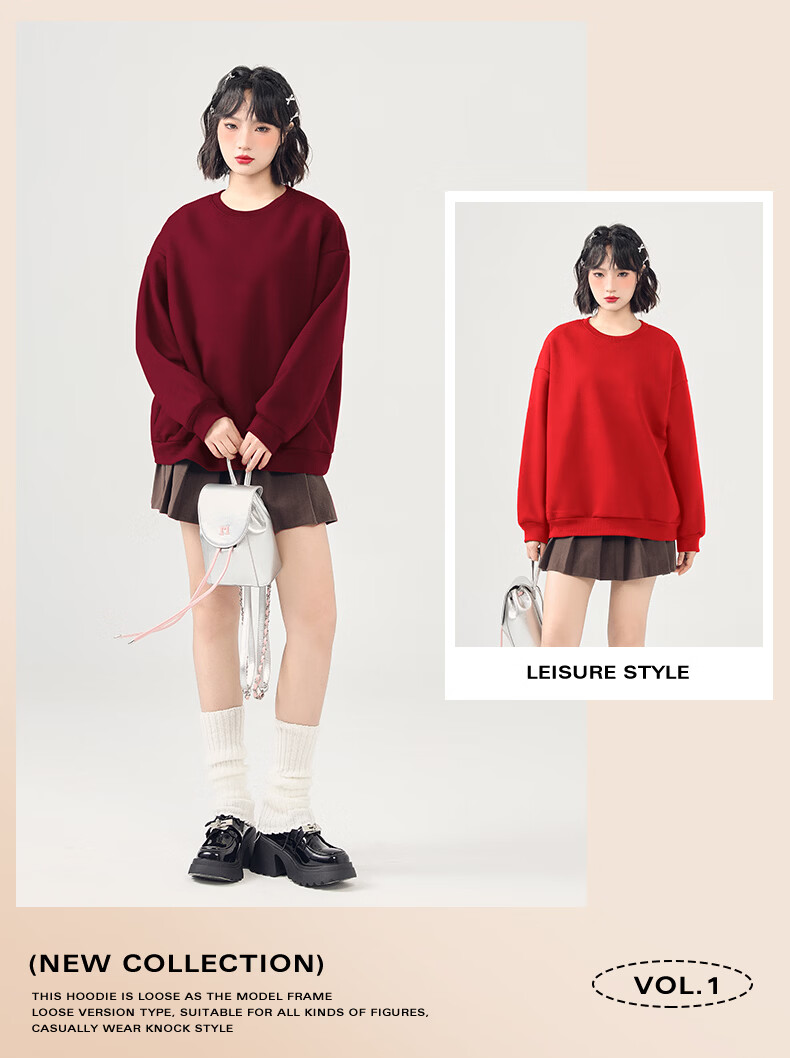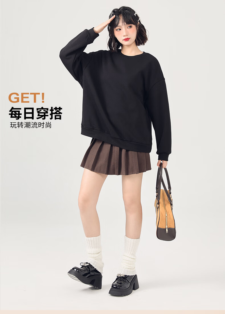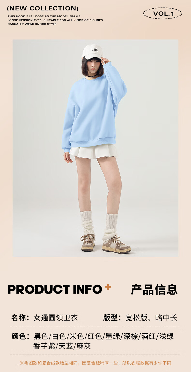 真维斯(Jeanswest)卫衣女2026新款春秋季初中生纯色打底衫内搭小个子韩系上衣女长袖 天蓝 纯色 S