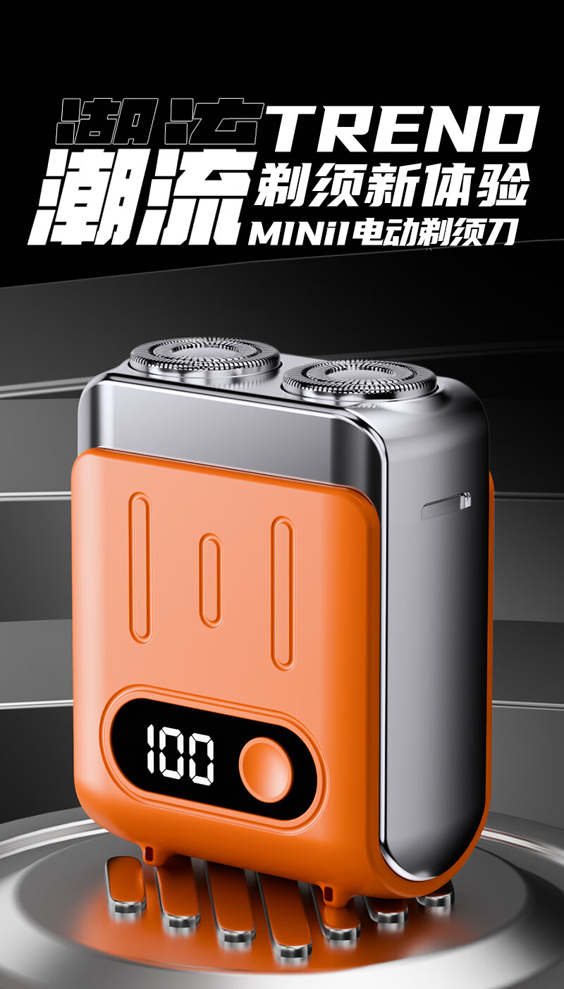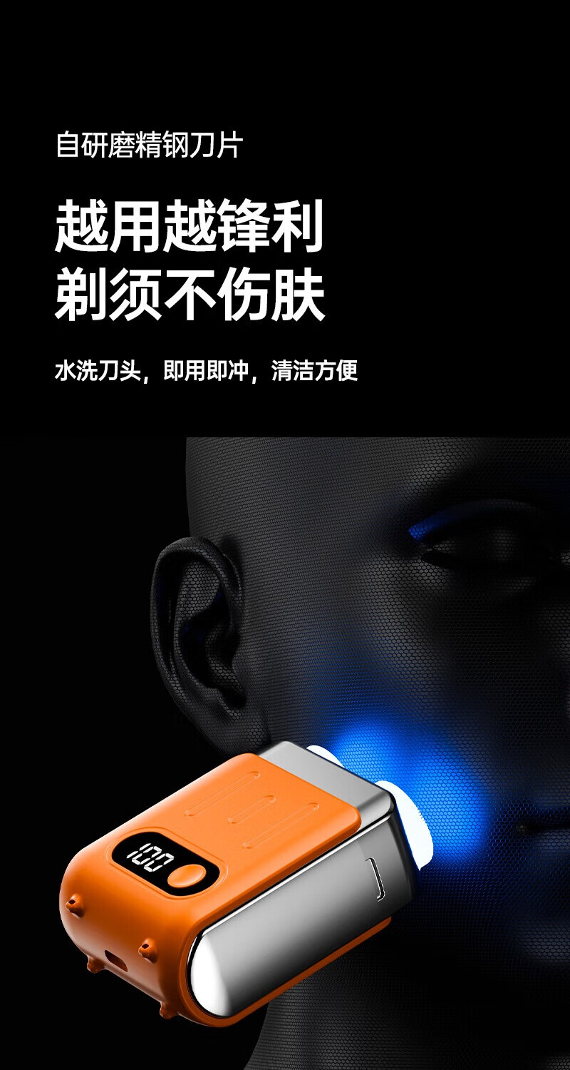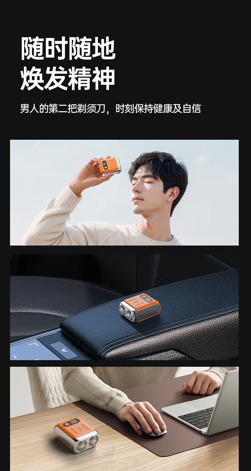米族(Miz)德国高端电动剃须刀磁吸双刀头迷你便携式男士电动刮胡刀 基础款/活力橙 8核电机+磁吸刀头