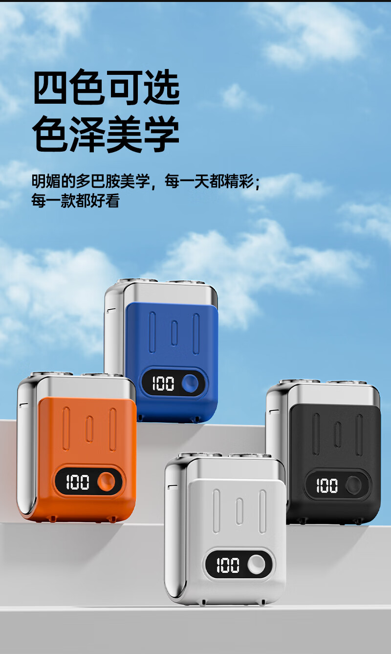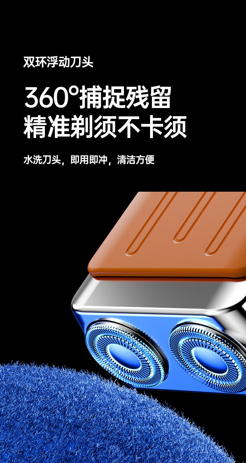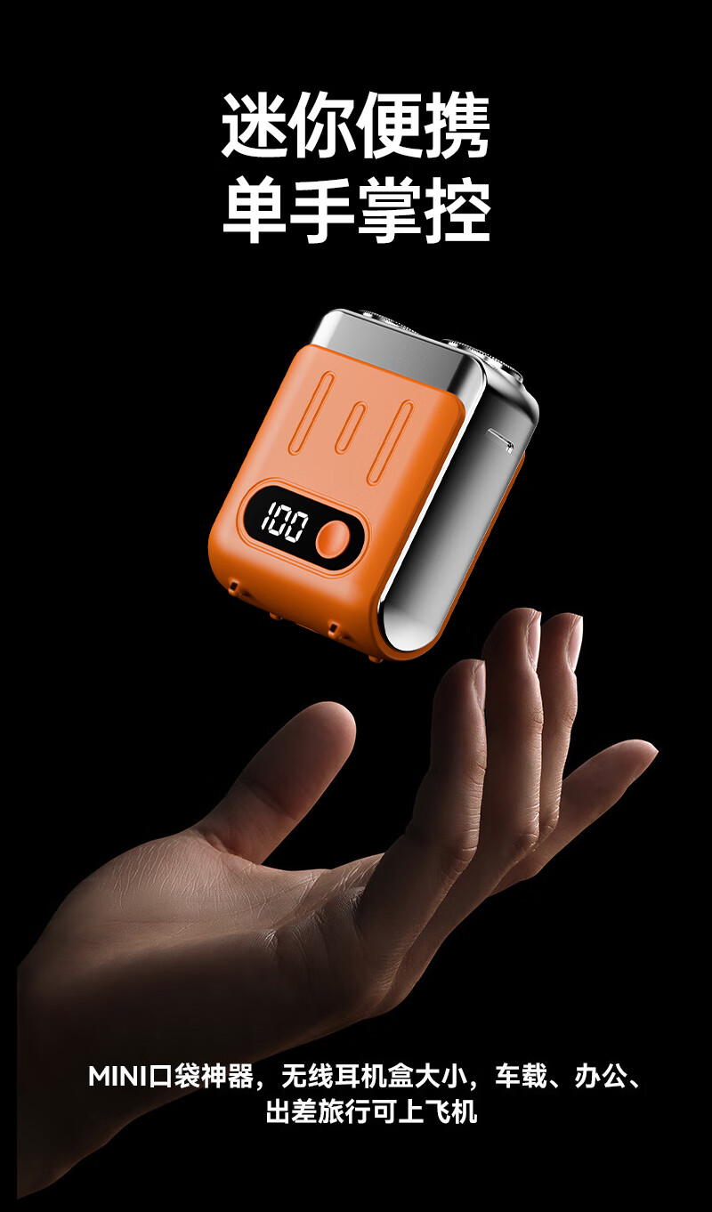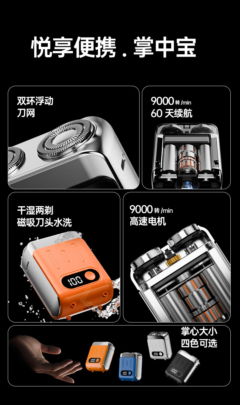 米族(Miz)德国高端电动剃须刀磁吸双刀头迷你便携式男士电动刮胡刀 基础款/活力橙 8核电机+磁吸刀头