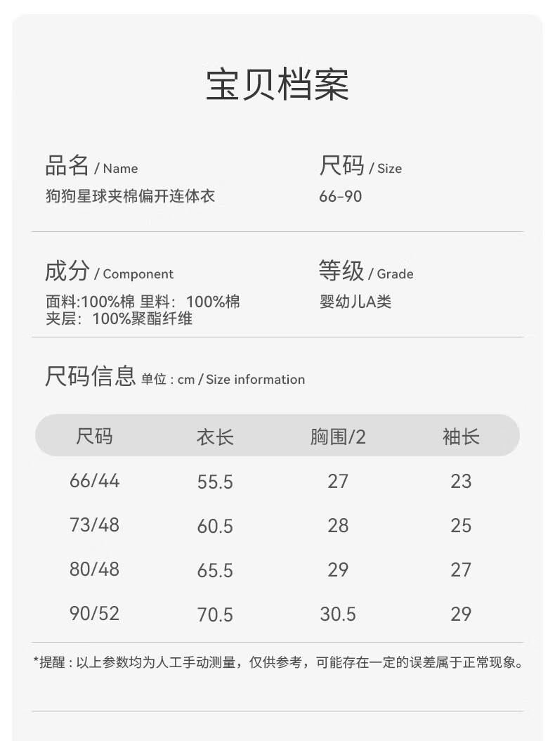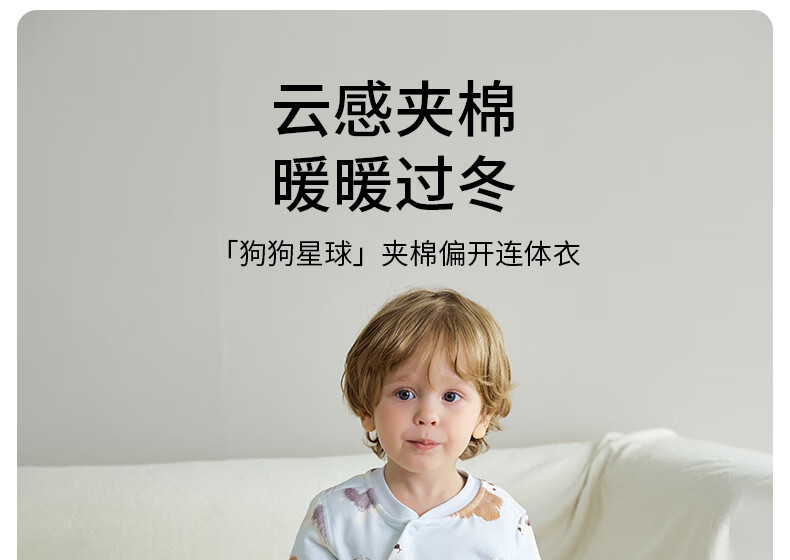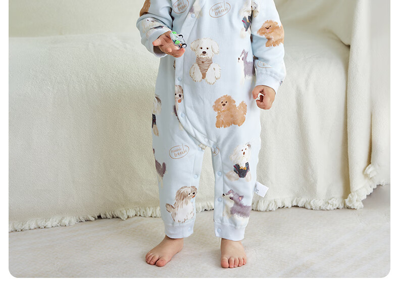 欢喜小熊 宝宝连体衣婴幼儿抗菌防螨衣服新生儿冬季夹棉保暖哈衣婴儿爬服 狗狗星球 【7A抗菌 防螨】 80cm
