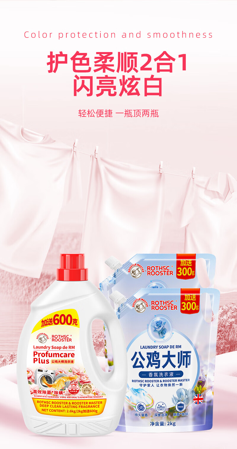 公鸡大师经典原味洗衣液13.2斤套装持久留香除菌除螨去污渍内衣母婴可用