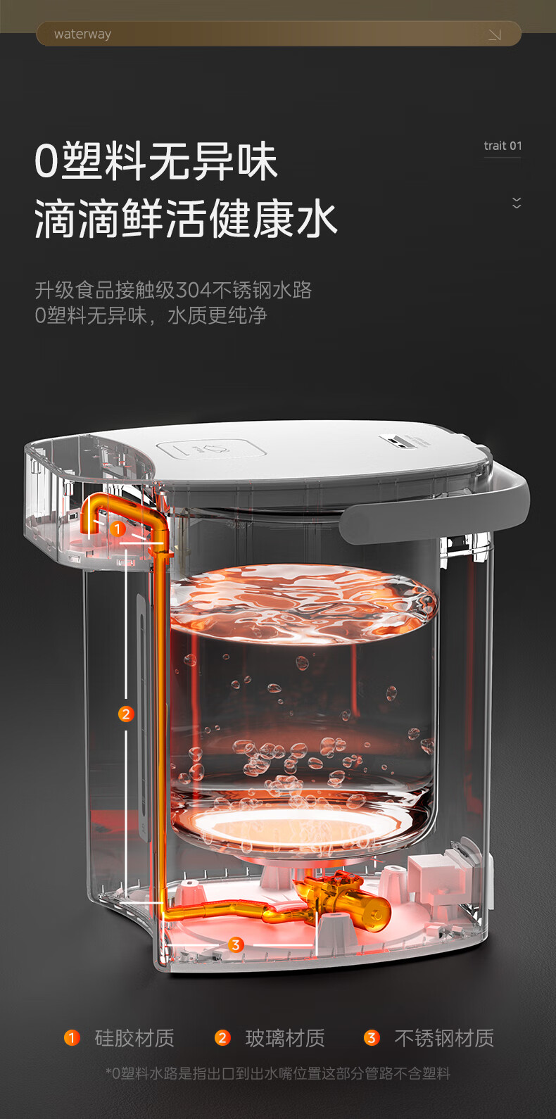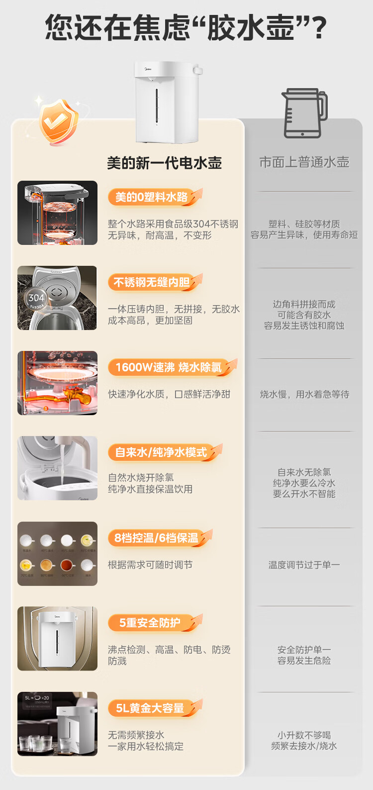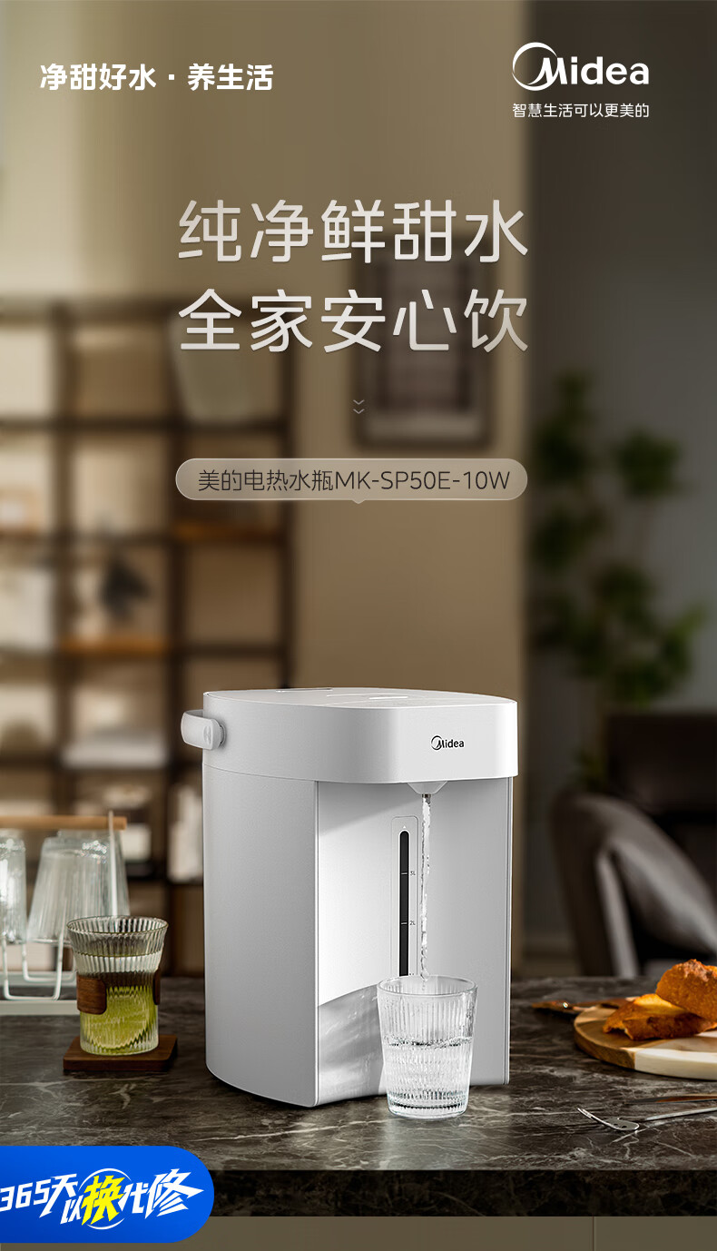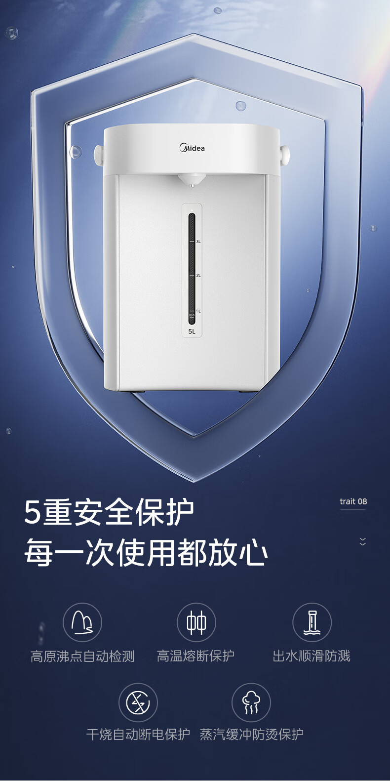 美的(Midea)电热水瓶烧水壶恒温电热水壶不锈钢一体无缝内胆0塑料家用5L大容量开水壶多段控温保温 SP50E-10W