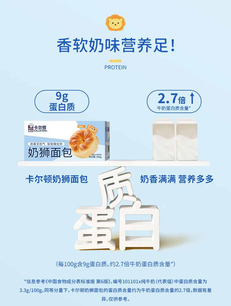卡尔顿(Calleton) 奶狮面包食品点心零食营养面包早餐整箱休闲解馋小吃整箱 奶狮面包500g*1箱