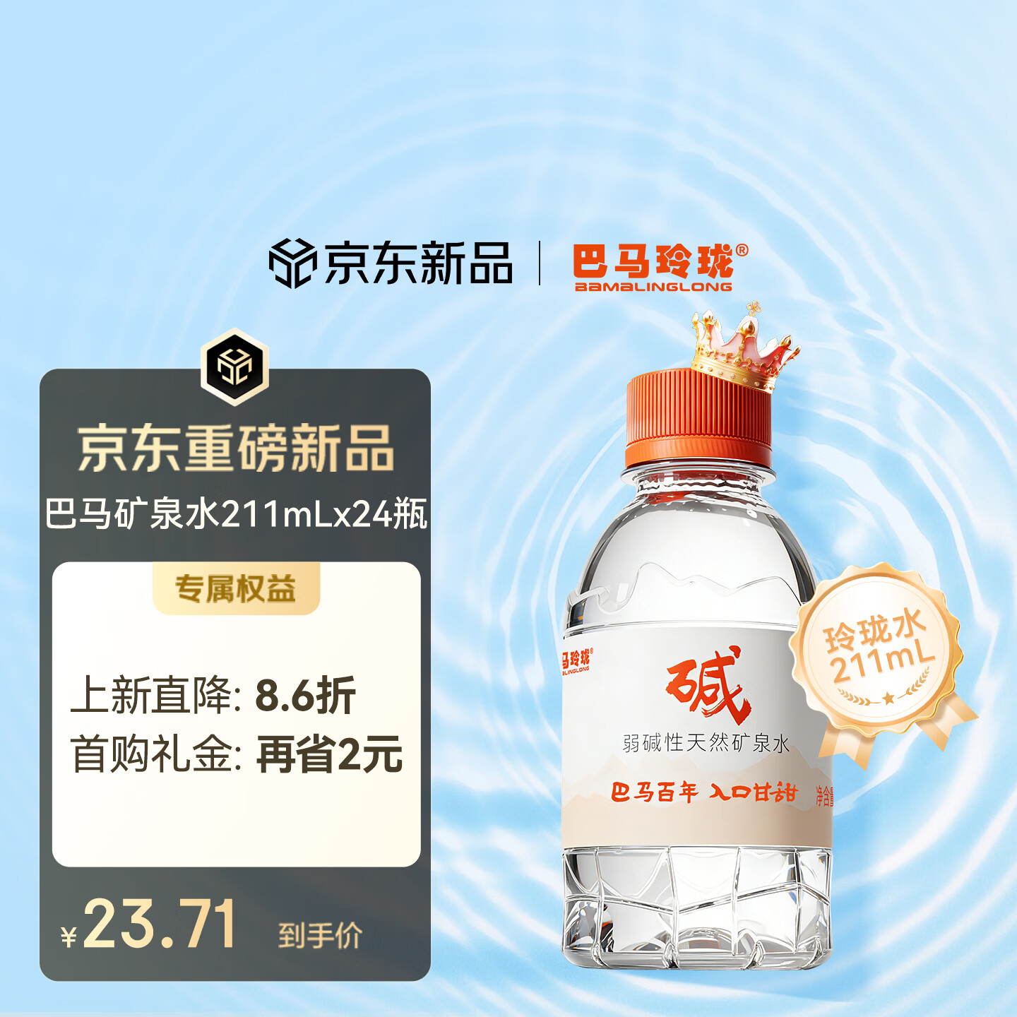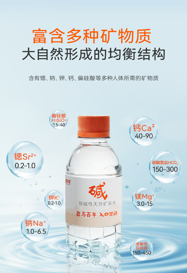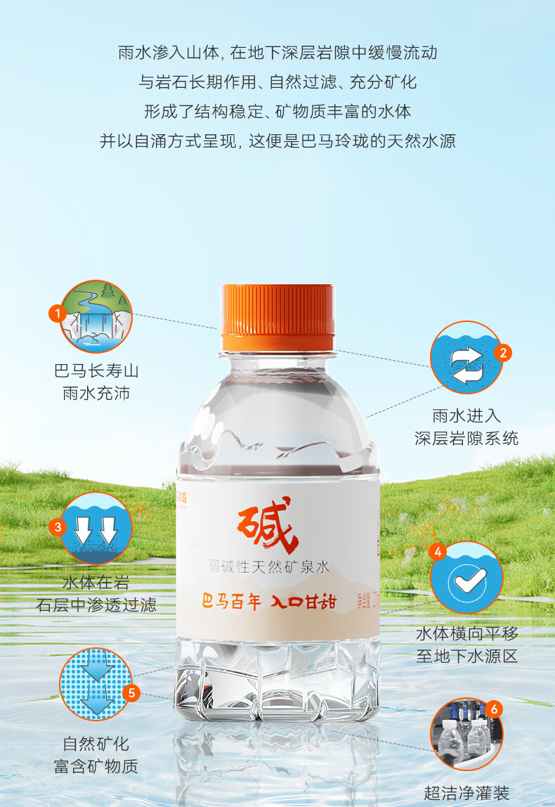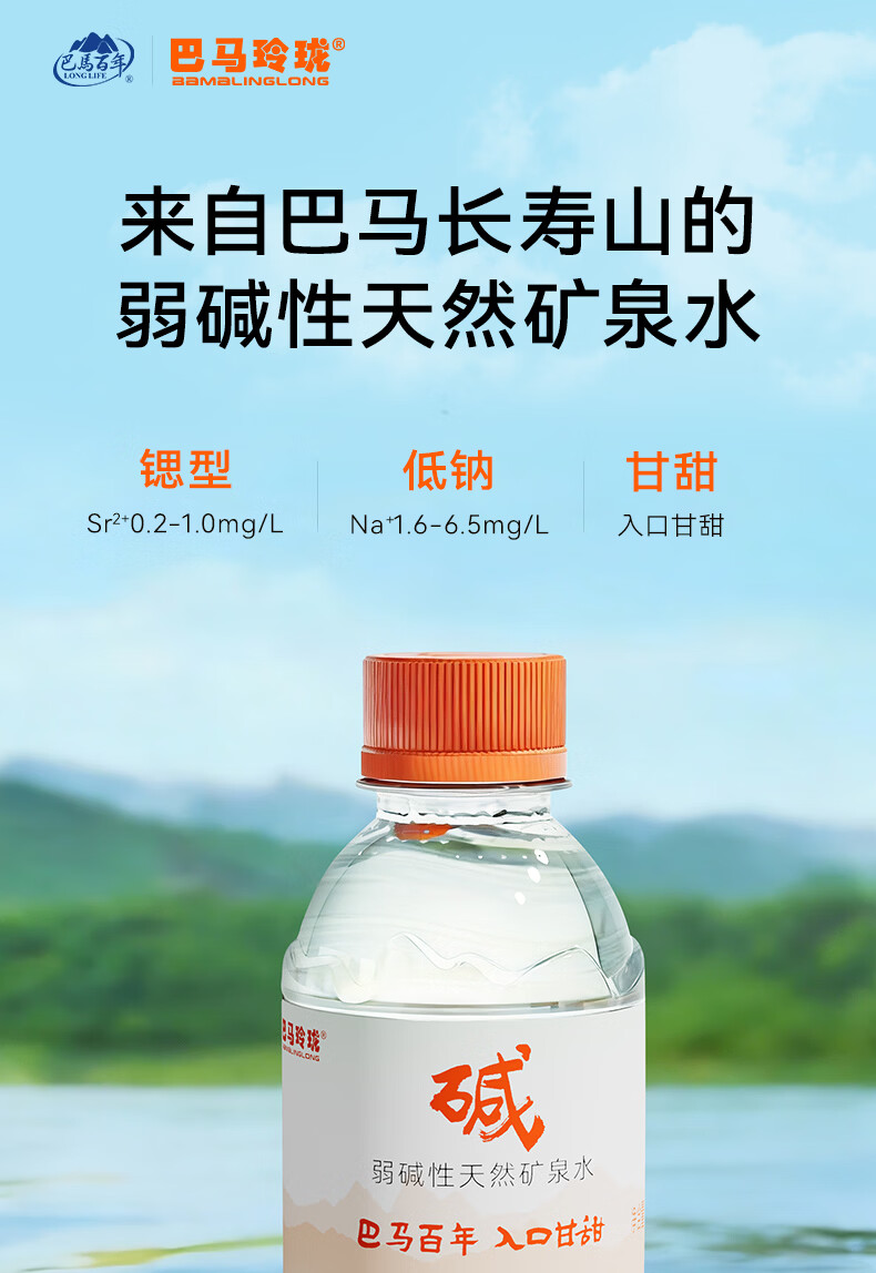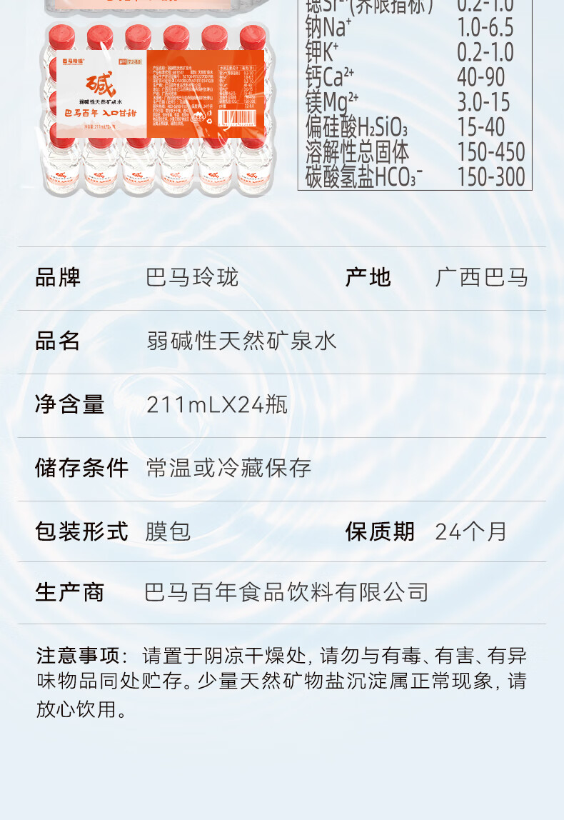 巴马玲珑水巴马百年天然矿泉水211ml*24小瓶装弱碱性高锶低钠口感甘甜膜包