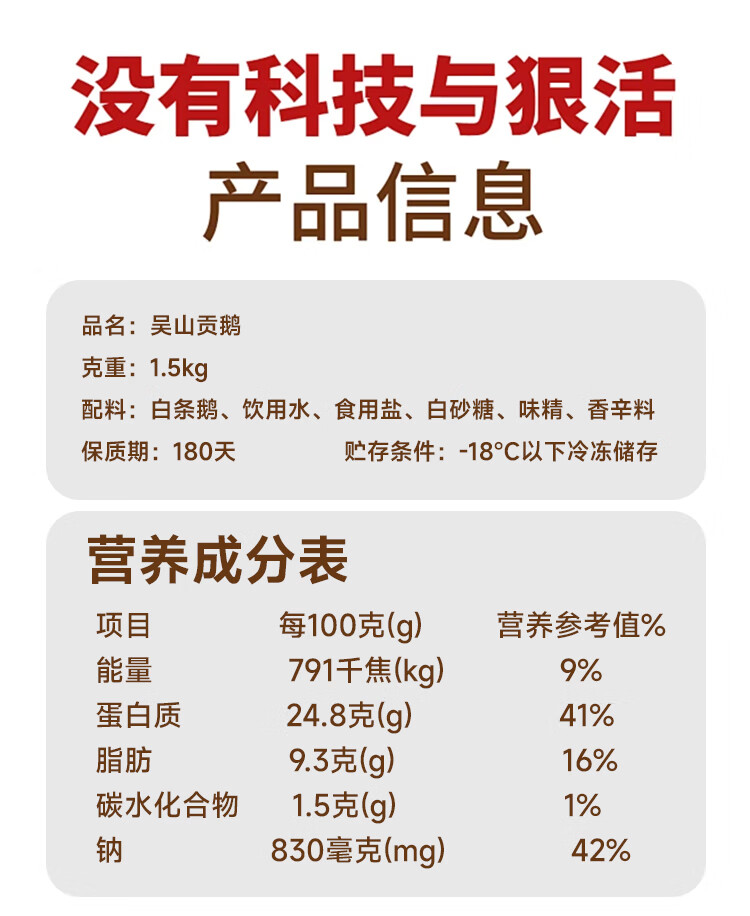 粮农星厨吴山贡鹅整只卤鹅安徽特产徽菜商用现卤肉类熟食真空加热即食批发 吴山贡鹅【整只】3斤左右