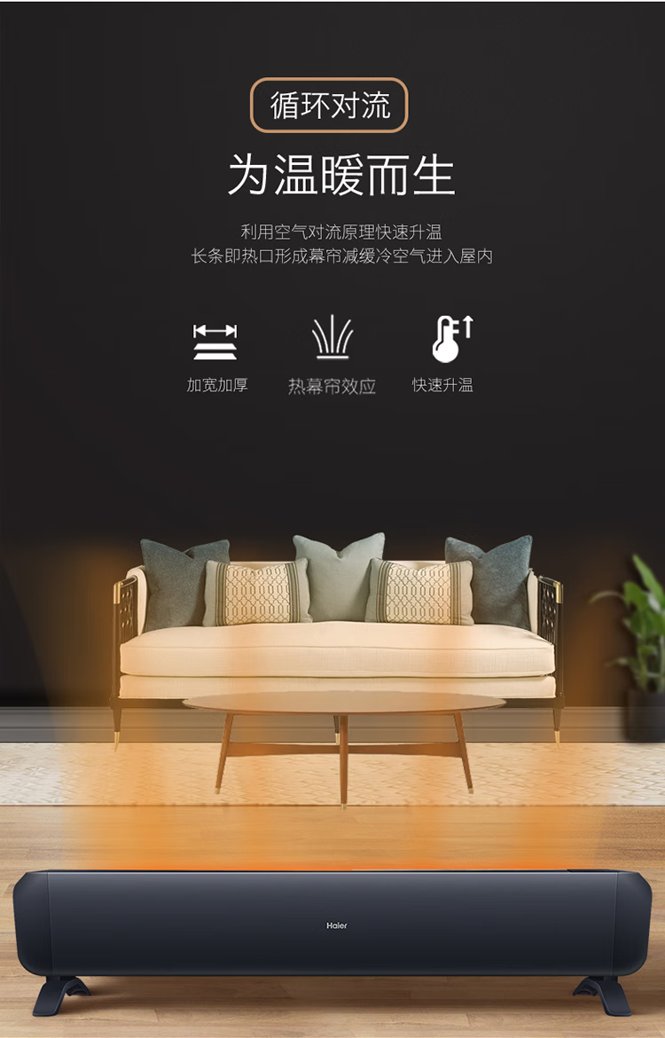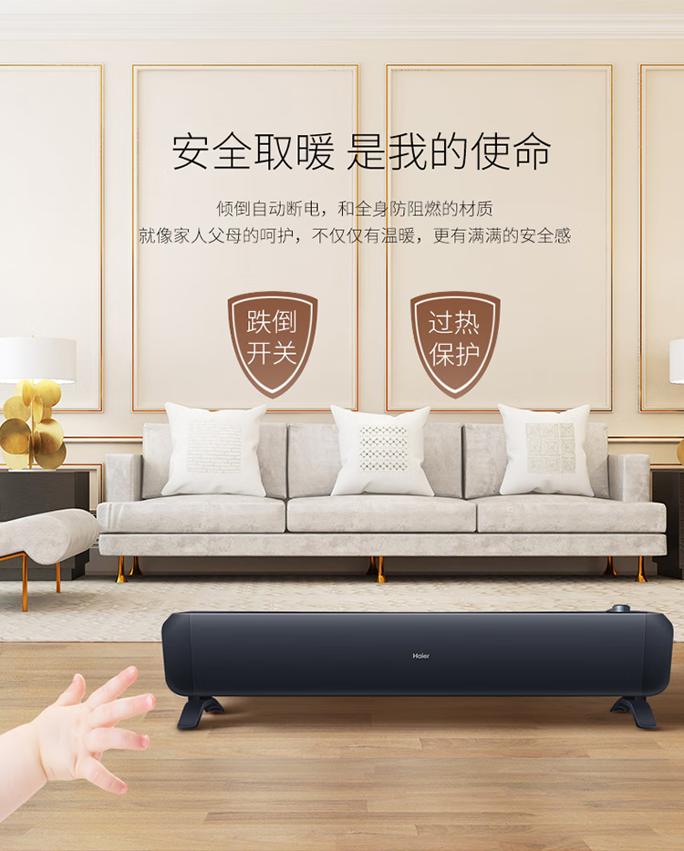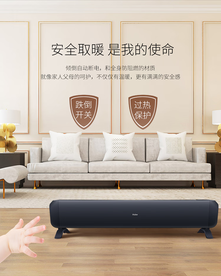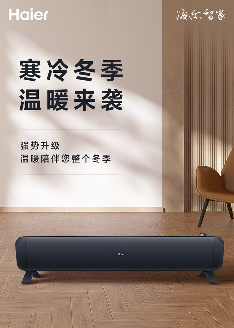 海尔(Haier)家用卧室踢脚线石墨烯电暖器暖风烤火炉家用取暖器防水居浴两用 【定时遥控款】HKS2219