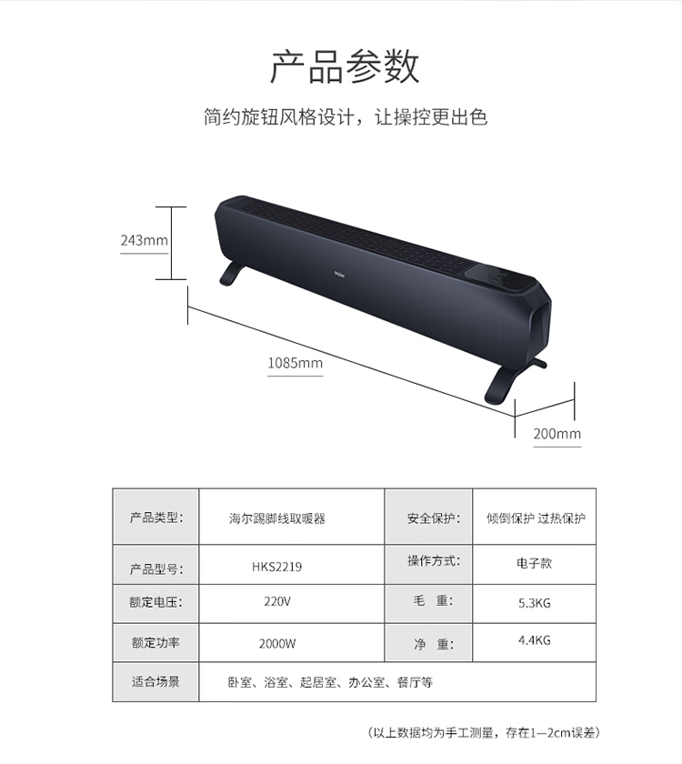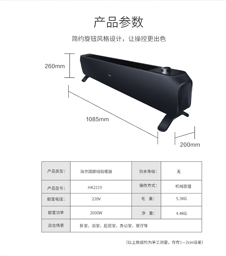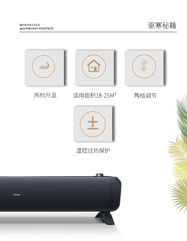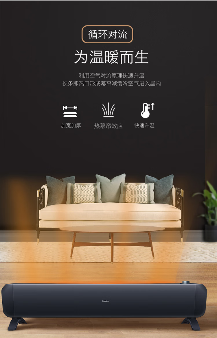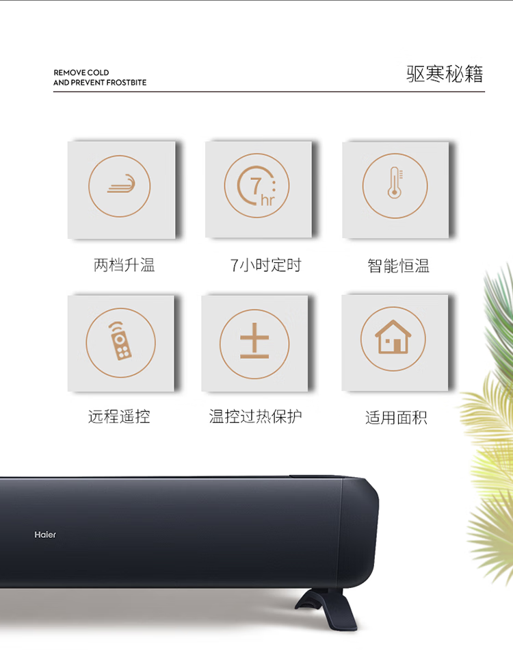 海尔(Haier)家用卧室踢脚线石墨烯电暖器暖风烤火炉家用取暖器防水居浴两用 【定时遥控款】HKS2219